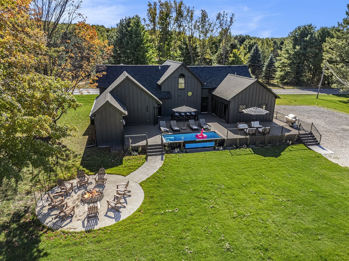 Thoughtfully designed and thoroughly renovated with you in mind, Offroad Onyx is the ideal vacation destination for a luxury getaway in the pristine winter landscapes of Western Michigan. Featuring a heated container pool (104 degrees!), this is the perfect place to relax, reconnect, and recharge during the holiday season or to bring in the new year. Located across from Silverback Speedway and on 20 acres, you can’t beat the location. Complete privacy. It has been packed with amenities including