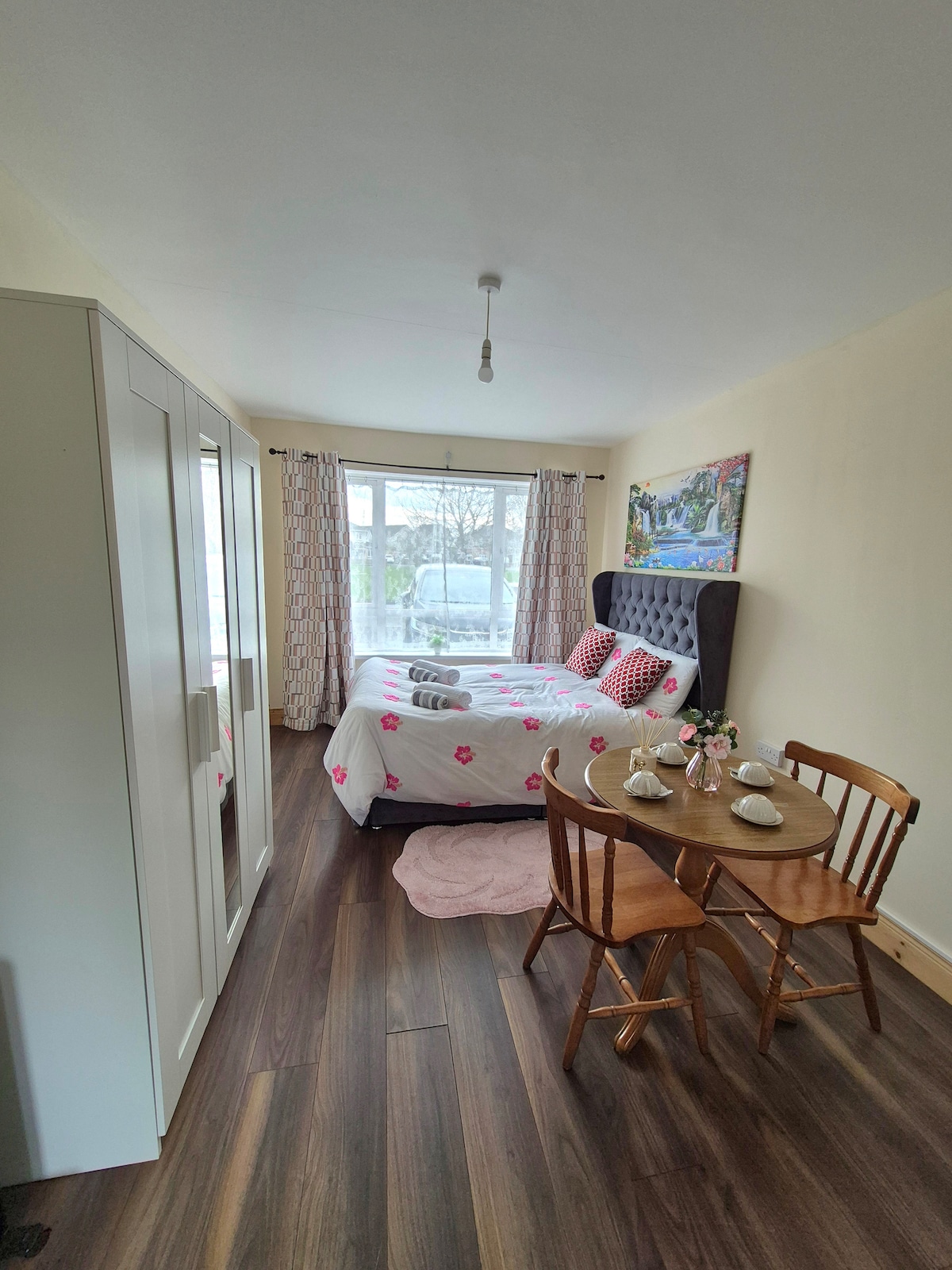 This unique place has a style all its own. Situated in Drogheda while having stunning views of the countryside and gardens. The apartment is airy and peaceful perfect for a relaxing stay. Robins Nest enjoys a great location close to Dublin a few Km to Stunning beaches and a short distance from so many historic sites such as Newgrange Oldbridge House and Mellifont Abbey. We are situated a 3 minute drive from the train station .The Dublin 101 bus and local town bus is on our doorstep