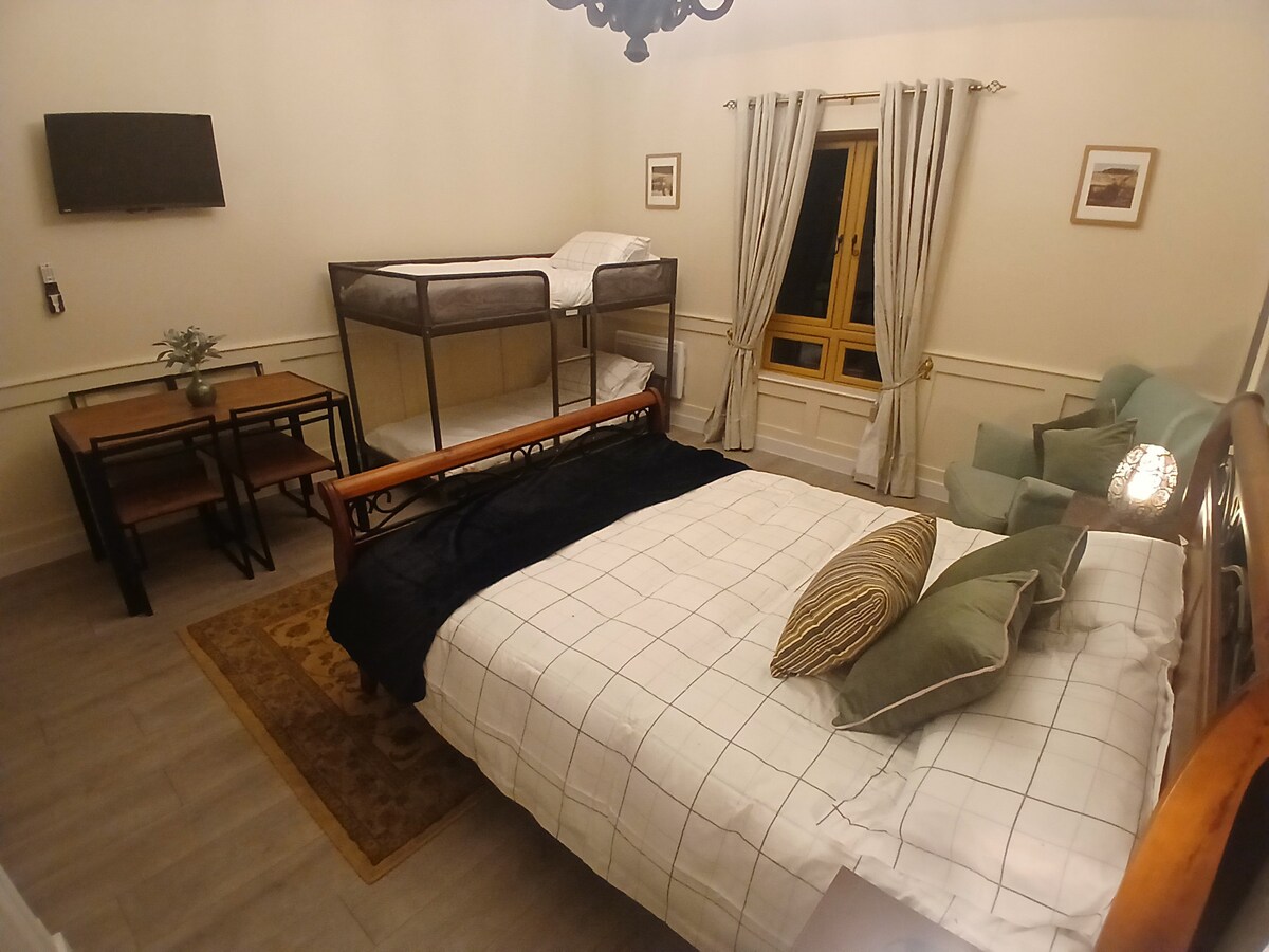 The Clonmellon Lodge is an 18th c. gothic mini castle recently restored, newly refurbished bathrooms and kitchen, all in one floor, with easy access to the grounds of Killua Castle. The Lodge can fit 5 people comfortably. There are 2 bedrooms with ensuite bathrooms. The first one with an ( American) Queen size bed, and the second with a double size bed. There is an office with a daybed that can sleep an small adult comfortably, and it has a full bathroom next to it.