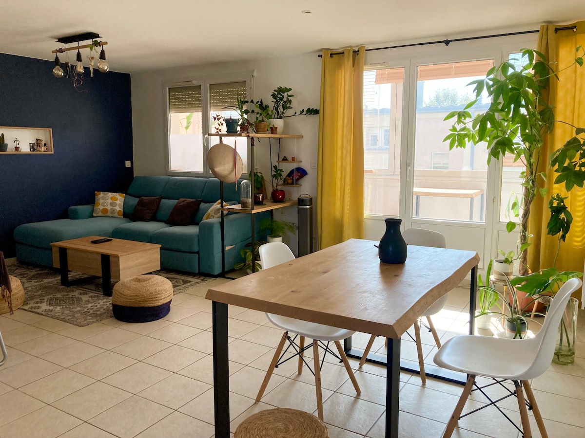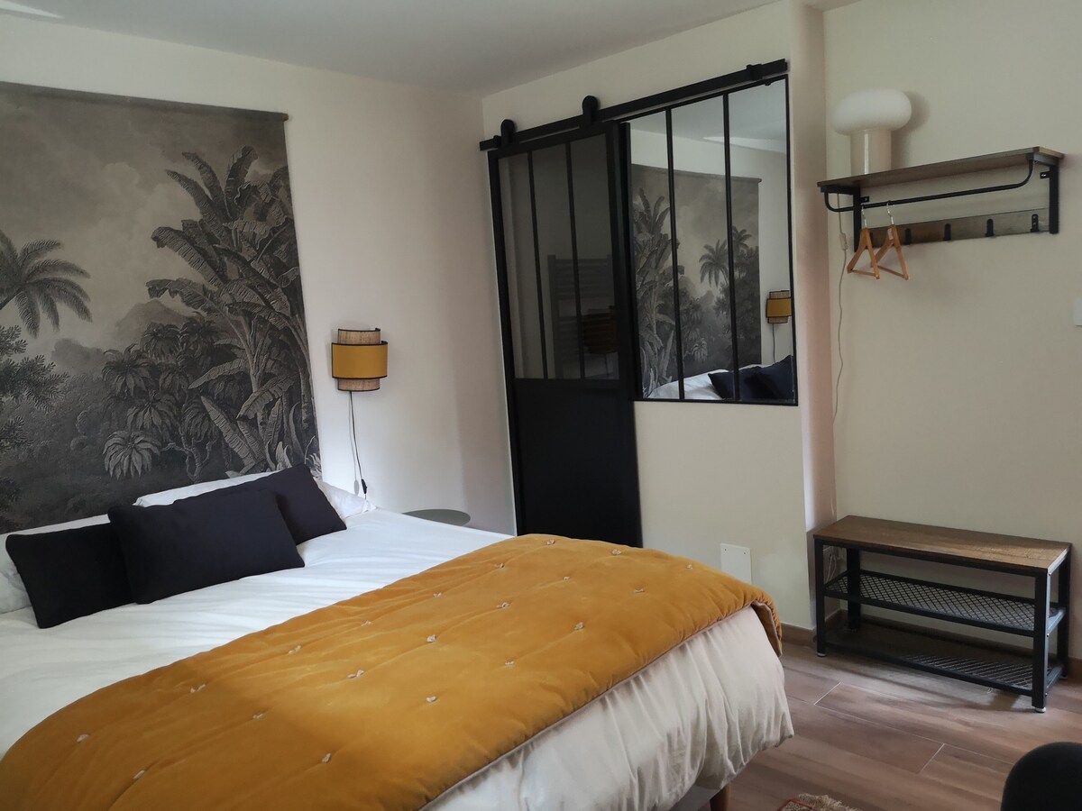 Enjoy an unforgettable stay in this unique accommodation, brightness, plants of all kinds, beautiful volumes and mountain views are at the rendezvous. Composed of a living room open to an equipped kitchen, a duplex bedroom with double bed, a bathroom with bathtub and a beautiful furnished terrace. Important information: the hammock is no longer available at the moment The little ones +; - bed linen and towels provided - Wifi - furnished terrace - washing machine - Tassimo coffee machine