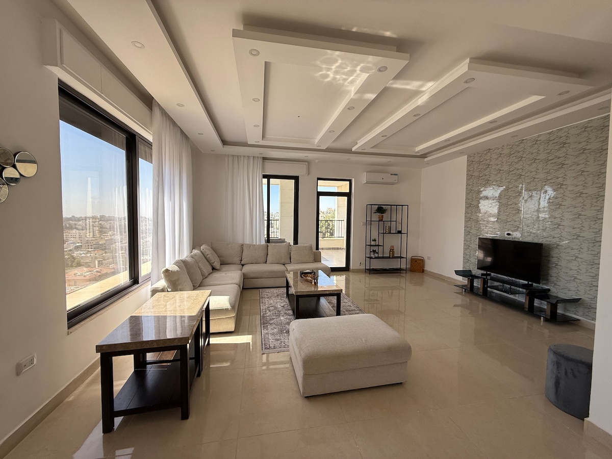هذة الشقة قريبة من جميع الخدمات ، من سوبرماركت و مقاهي و مطاعم و هي منطقة الدوار السابع و ايضاً قريبة من سيفوي السابع يبعد هذا المسكن فقط 30 كم عن مطار الملكة علياء الدولي بعض اقدام فقط عن مكتب سفريات و مواقف باصات جت باص و مكتب طيران الملكية الاردنية . و يبعد عن الصويفية و جاليريا مول 800 متر تقريبا مشيا علي الاقدام . منطقة حيوية جدا عمارة جديدة ، الشقة علي الطابق السادس و يوجد مصعدين و ايضا مصف للسيارات تحت العمارة