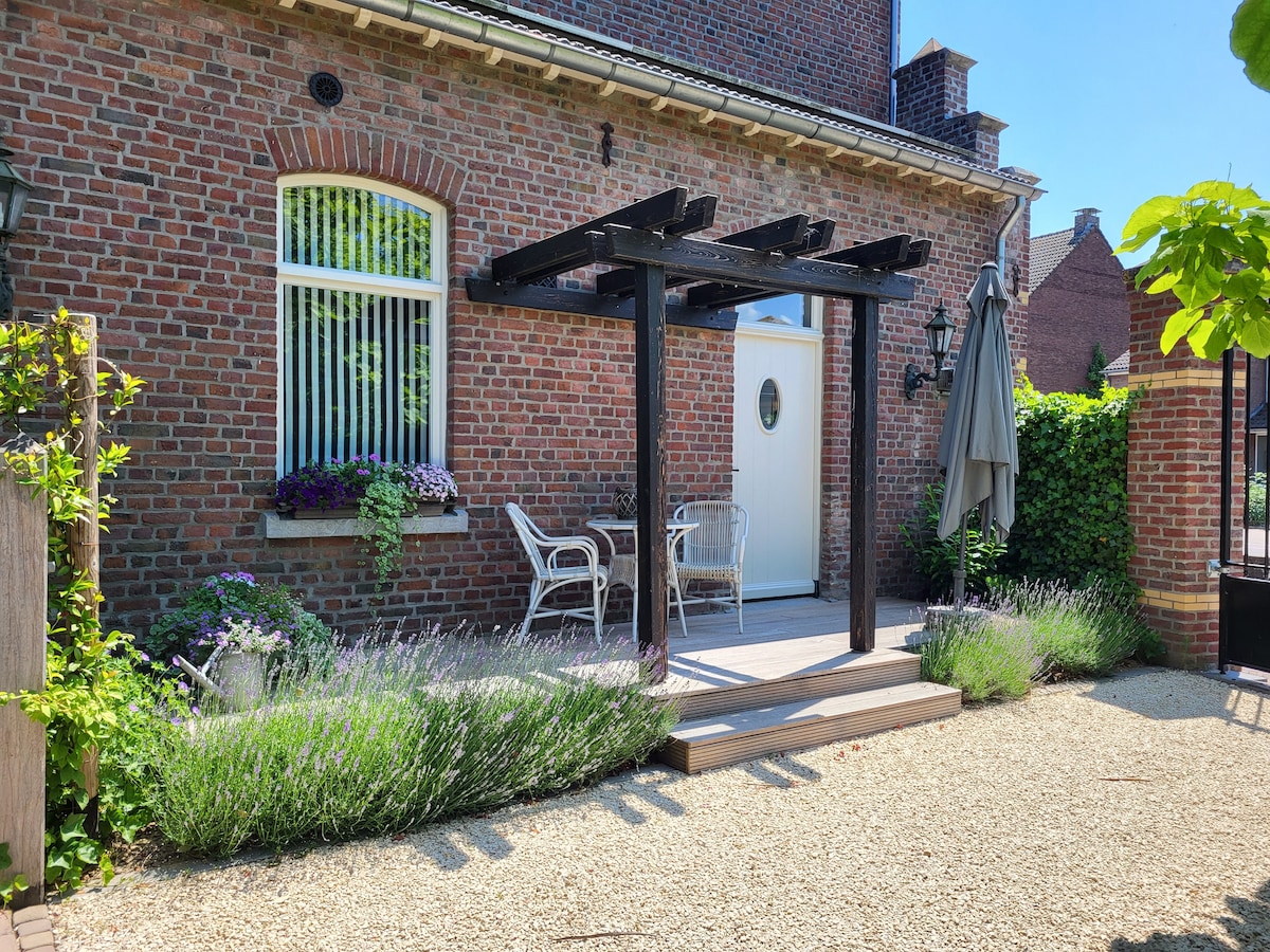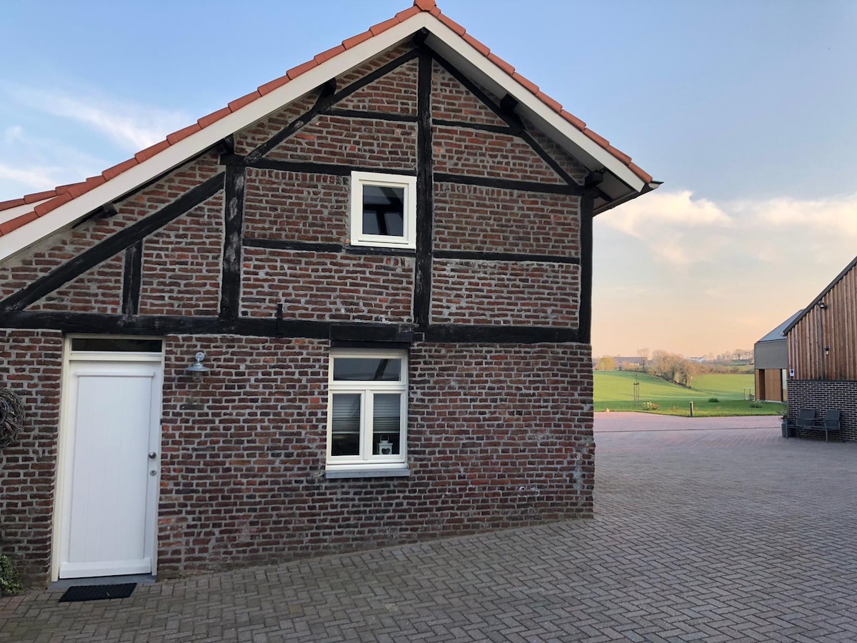 This renovated cottage is located in a green garden in the hills of Limburg. Relax on the wooden porch or the terrace (with Jacuzzi) and enjoy the view of green landscapes and horses. Start a trail for hiking and cycling trails one step away of the cottage and explore the nature and little villages. Go on a citytrip to Maastricht and Valkenburg (10 min), Aachen or Liège (20 min). The cottage is located in the countryside in a small and quiet village, 2-4 km from supermarkets and shops.