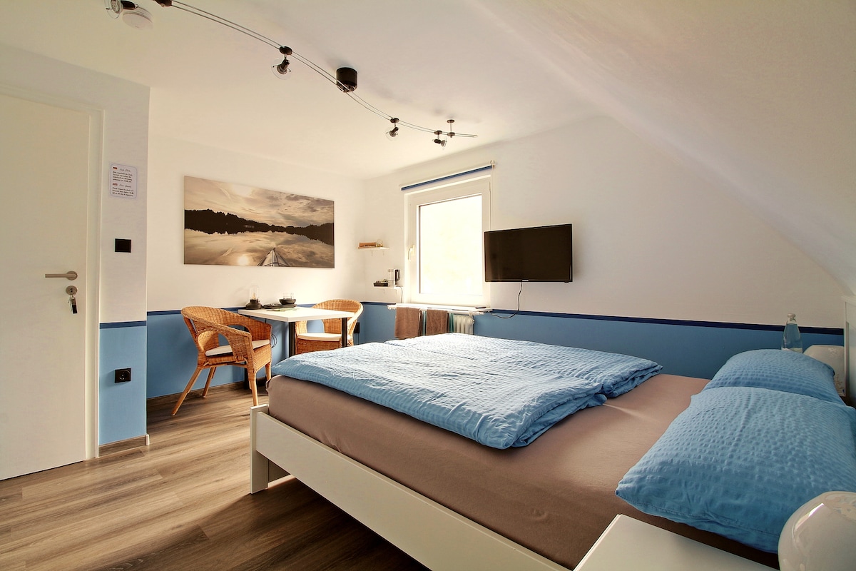 Newly renovated after storm damage! Separate small studio guesthouse behind the main house with parking , wonderful views of the Ahr valley nearby. Small en-suite wet room with shower and toilet, basic cooking area with a double cooking hob, fridge, microwave, kettle, toaster and seating area. There is a tiny patio outside with seating. 28km to the Nürburgring. 4 hiking paths are just outside the front door. Very quiet country village. Shops, bank etc in nearby Ahrbrück (4km) Pets are welcome