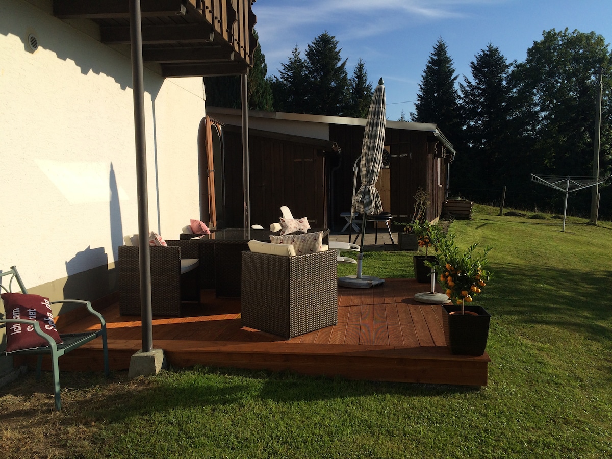 Liebe Allgäu Freunde, unsere gemütliche Ferienwohnung liegt im beschaulichen Dörfchen Hasenried abseits des alltäglichen Trubels. Die Wohnung liegt im Obergeschoss mit toller Aussicht vom Balkon. Der Balkon kann das ganze Jahr genutzt werden, da er komplett mit Schiebeglasfenstern versehen ist. Auch unser Garten mit schöner Pergola steht unseren Feriengästen zur Benutzung zur Verfügung. Ein Grill oder auch eine Feuerstelle kann auf Wunsch mitbenutzt werden.