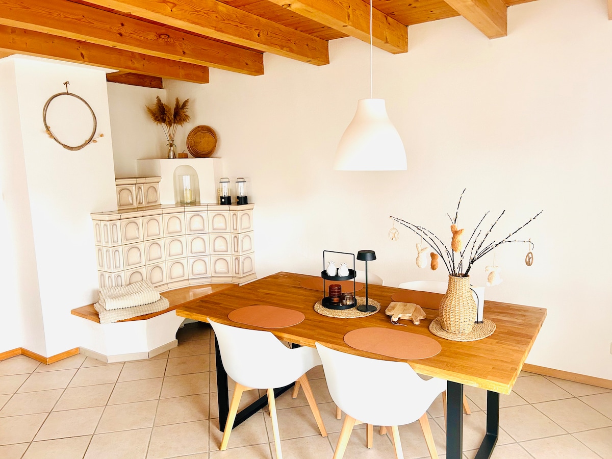 Die Ferienhaushälfte befindet sich in ruhiger Lage. Im Erdgeschoss befinden sich grosszügige Aufenthaltsräume mit einer Terrasse nach Osten. Bitte beachtet, dass das Haus nur vegetarisch benutzt werden kann. Im 1. Stock befinden sich 3 Schlafzimmer, wobei ein Schlafzimmer ein Durchgangszimmer für das dahinterliegende Schlafzimmer ist. Das Holzhaus ist gemütlich mit Holzmöbeln eingerichtet und verfügt über alles, was es für einen schönen Aufenthalt braucht. Spiele für alle Alter vorhanden.