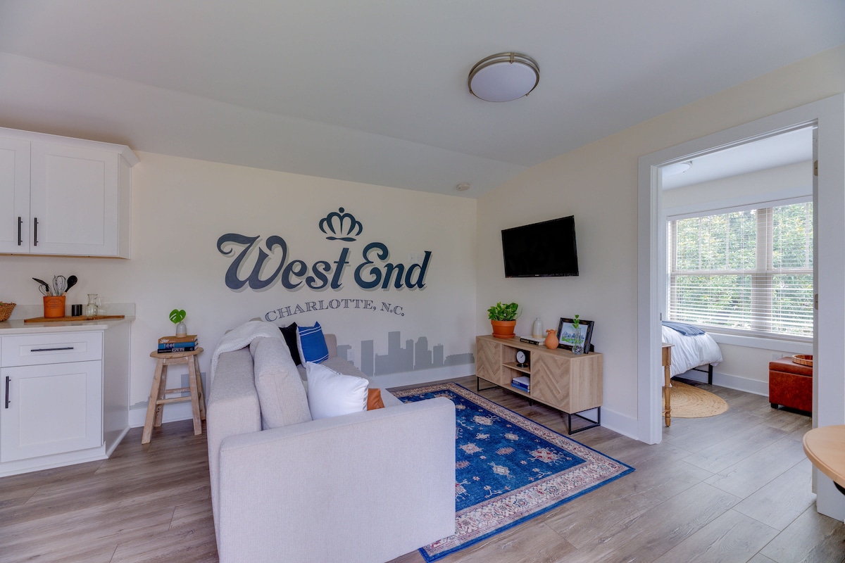 Escape to our backyard haven in vibrant Villa Heights, just 3 miles from Uptown Charlotte & walkable to coffee, drinks & more. This stylish guesthouse blends modern comfort with urban charm. The well-designed space features a comfortable bedroom, contemporary bathroom, cozy living room, & kitchenette. Vaulted ceilings & ample windows create an open, airy feel with abundant natural light. Immerse yourself in the inviting ambiance & experience the best of the Queen City from this chic retreat.