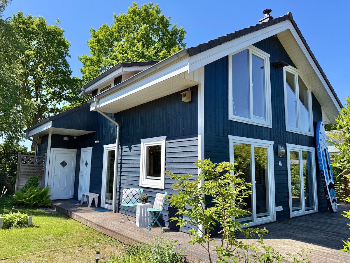 ... look out of your bed onto the water, enjoy the peace and quiet and listen to the rustle of the beech forest, experience bike tours directly on the water and enjoy nature. A beautiful, modern and rustic, low-energy half-timbered house with thatched roof, Moroccan tiles, oak floorboards and clay plaster walls awaits you. For activities there is a beautiful large garden with a forest swing, free steam sauna, outdoor shower and tub, a standup paddle, a paddle boat and 4 bicycles.