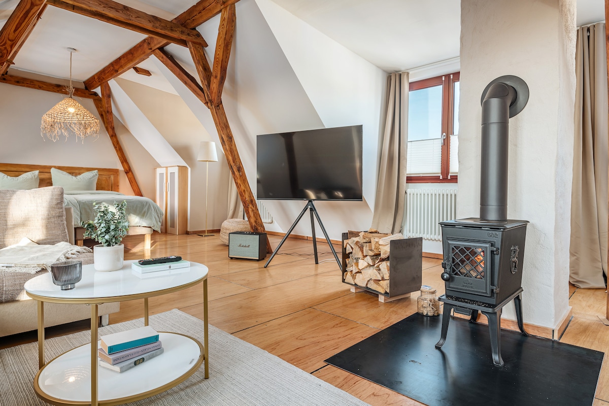 hyggeliges DG Kamin, Badewanne, gratis Parkplatz