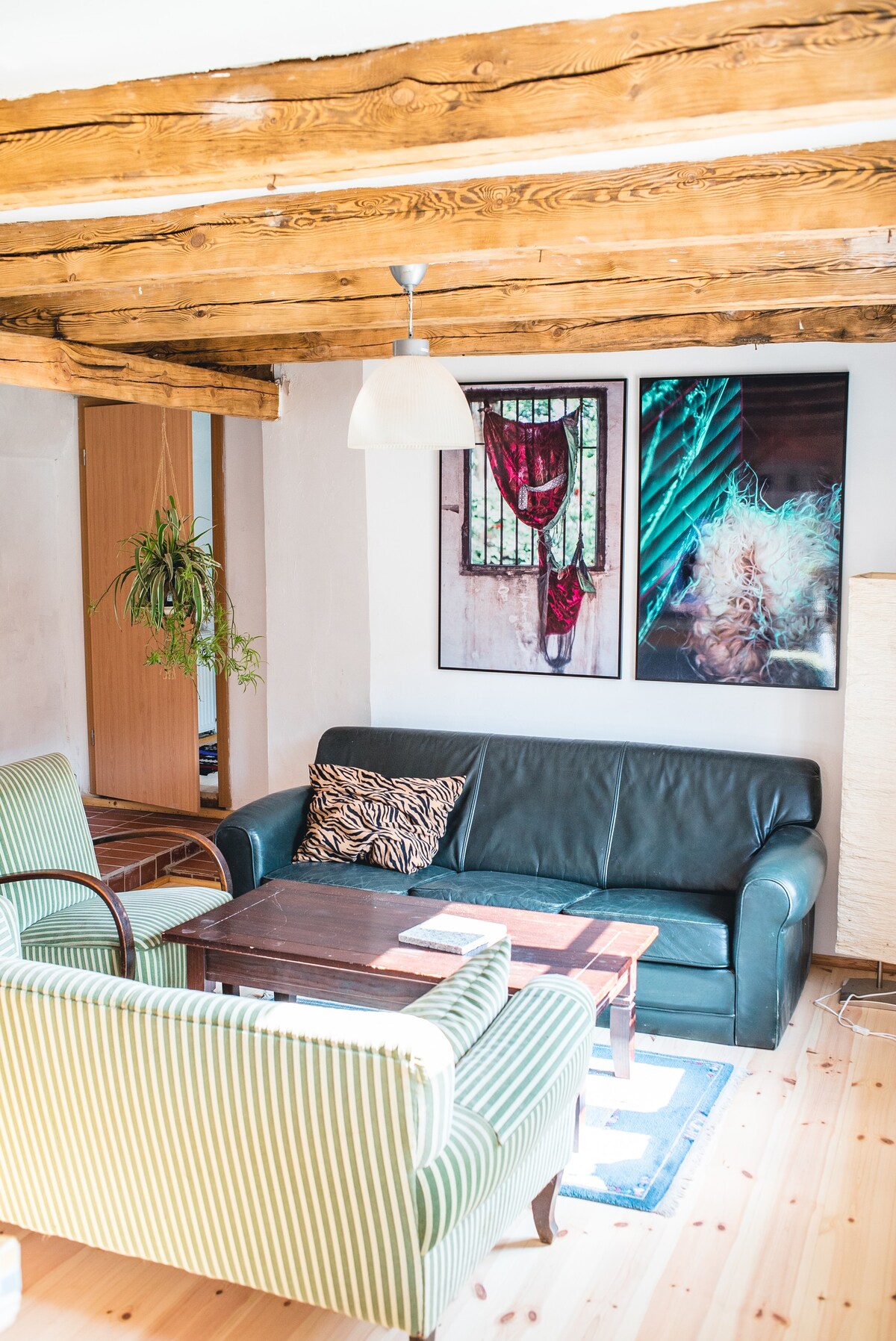 Unsere erste Ferienwohnung befindet sich in der vorderen Hälfte des ehemaligen Kuhstalls. Im Erdgeschoss befindet sich eine charmante Kücheninsel, der Ess- und Wohnbereich sowie das Badezimmer. Das Doppelbett im oberen Schlafbereich wird durch ein Einzelbett ergänzt, zusätzlich gibt es noch ein bequemes Schlafsofa für zwei (insgesamt 5 Schlafplätze). Unser zweiten Inserat, das Eulennest, befindet sich gleich daneben und kann dazu gebucht werden. Dann ist Platz bis zu 8 Personen.