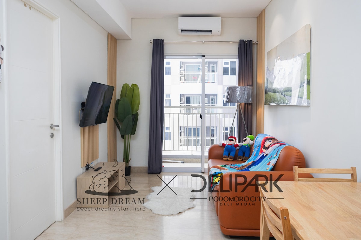 Newly Renovated Apartment Podomoro City Deli Medan Offering a Luxurious stay with Cozy & Homey design. You will find a captivating beautiful city view straight from the convenience of your window and balcony. Located in Center of Medan city. • Direct access to the Podomoro Mall right from the apartment Lobby • Opposite of JW Marriot Hotel • Sun & CP 8 Minutes • Very Beautiful City View • Full Furnish Lux • 2 unit Big Smart TV (with Netflix, youtube, etc) • High-speed wifi • Air Purifier