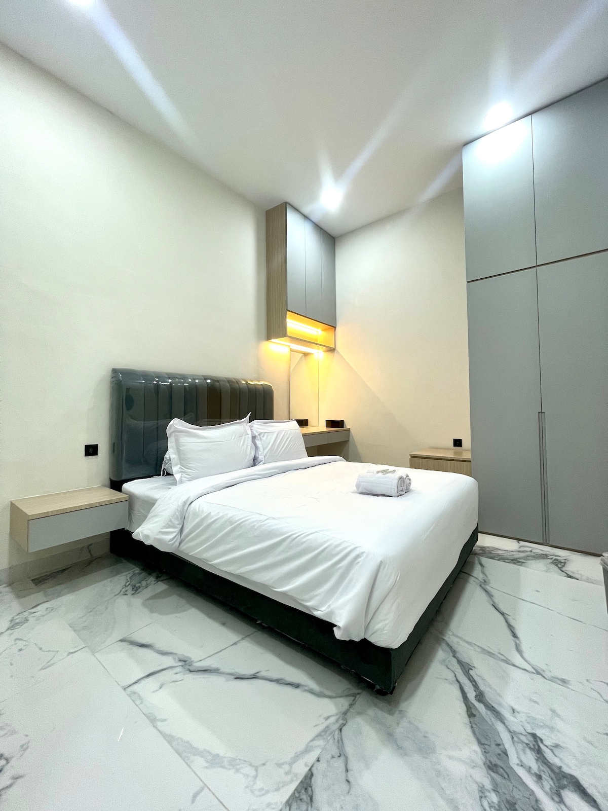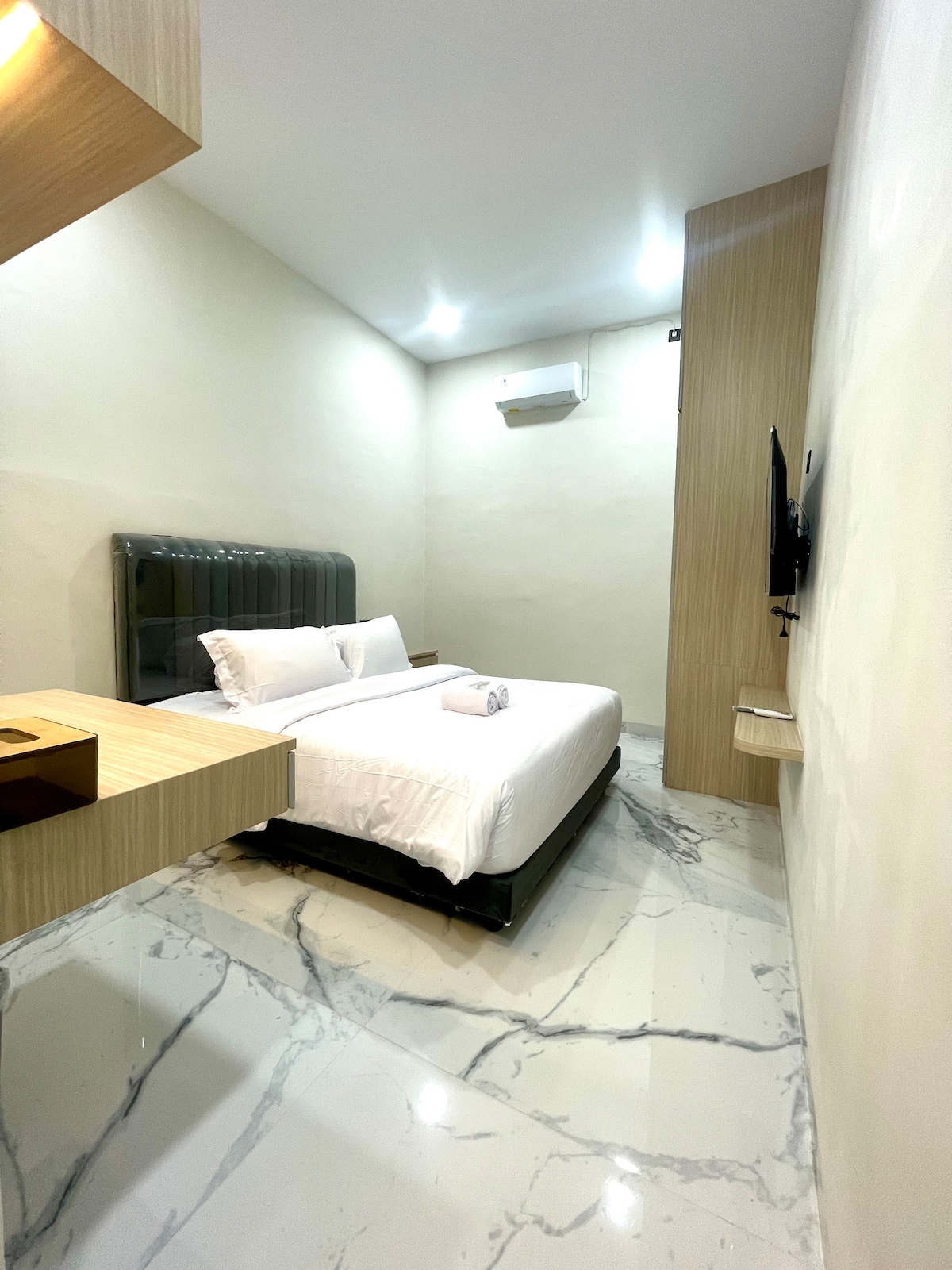 We are Senyaman Homes. Experience the comfort of staying in a modern room with a minimalist and elegant touch. Luxurious marble floors, warm lighting, and neat furnishings create a serene atmosphere perfect for rest. 📍 Strategic Location: • Near culinary centers, cafes, and popular restaurants such as "Ucok Durian, Richeese Factory, Wongsolo, Bunda Thamrin" • Minutes from malls • Business area • Safe and comfortable environment 💡 Suitable for: • Solo travelers • Couples • Business guests