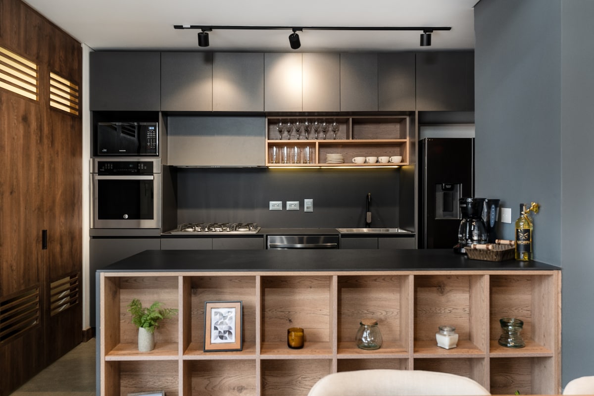 RECENTLY RENOVATED -High-speed internet great for remote work -Brand new A/C -Fully renovated Industrial design apartment -King size bed -Breathtaking views of Medellín (trust me, worthwhile to stay here) -19th floor -Unbeatable location in Poblado near to Provenza and Lleras Park -Modern amenities -Spacious living area -Smart TV x 2 -Fully equipped kitchen -Washer & Dryer Tower -Pool -Gym -Coworking space -Restaurant inside the building -Private parking -Self check-in -24/7 Security