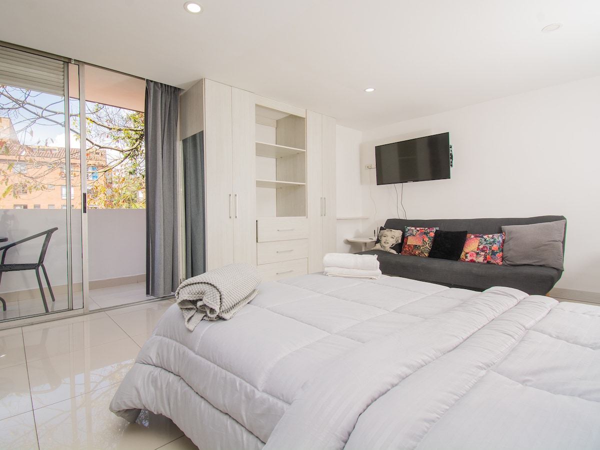Positioned in one of Medellín's top neighborhoods, this stylish loft offers a queen-size bed, a cozy living room, and a charming balcony. Perfect for business travelers, families, and small groups of friends seeking a modern apartment with an excellent location. You'll be just a short stroll away from restaurants serving both traditional Colombian and international cuisine, as well as supermarkets, local art galleries, bars, and cafes.