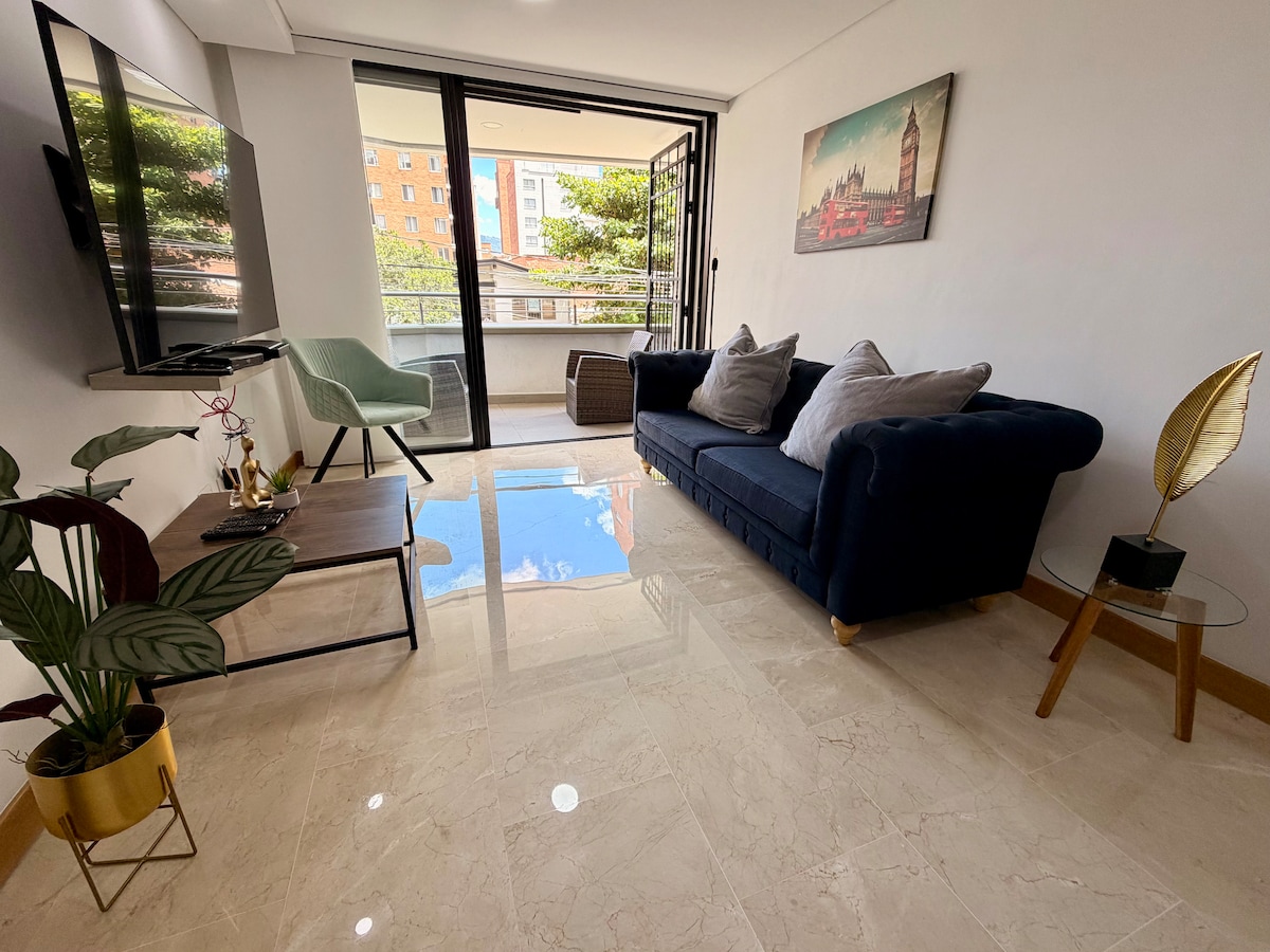 Moderno apartamento con vistas panoramicas y detalles arquitectónicos exquisitos, ubicado en El Poblado. Cuenta con 3 habitaciones, 1 cama King y 2 Queen size. Cada habitación cuenta con baño privado y vestir. Una hermosa sala y cocina, y un área privada de trabajo. A poco minutos de las principales zonas de entretenimiento, gastronimia y los mejores centros comerciales. Provenza, Parque Lleras, Parque del Poblado, Manila, Mall El Tesoro, Mall Santafé y el Mall Oviedo.