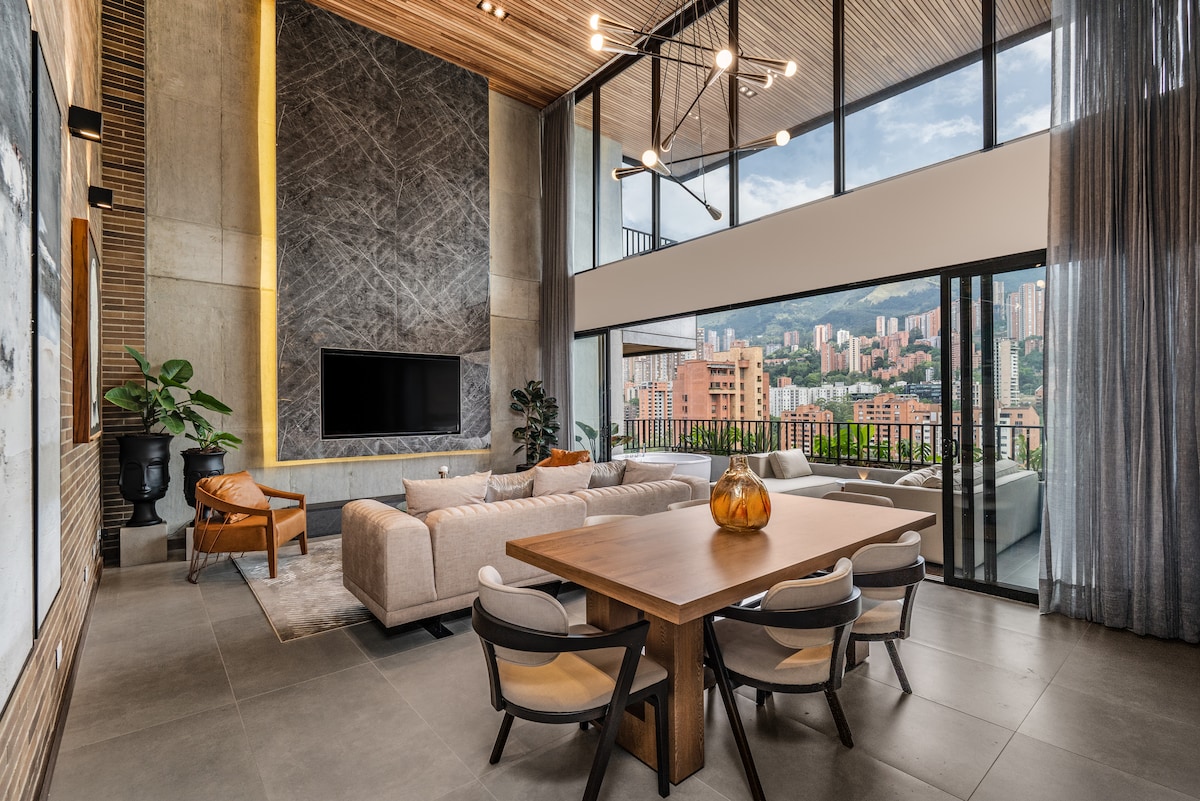 RECENTLY RENOVATED -High-speed internet great for remote work -Brand new A/C -Fully renovated Industrial design apartment -King size bed -Breathtaking views of Medellín (trust me, worthwhile to stay here) -19th floor -Unbeatable location in Poblado near to Provenza and Lleras Park -Modern amenities -Spacious living area -Smart TV x 2 -Fully equipped kitchen -Washer & Dryer Tower -Pool -Gym -Coworking space -Restaurant inside the building -Private parking -Self check-in -24/7 Security