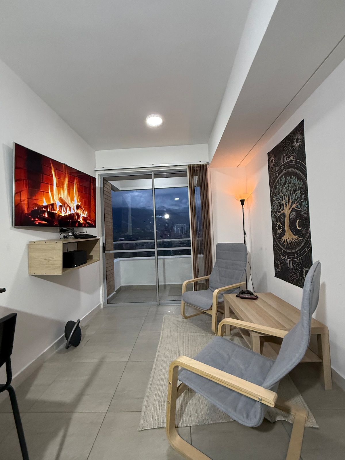 Hermoso apartamento nuevo y moderno, dotado con todo lo necesario para tu confort, acogedor, fresco e iluminado, excelente vista a las montañas y a la ciudad. Wifi de 500MB. Alta velocidad. Crea recuerdos inolvidables en este alojamiento único y especial. Situado en un edificio con diversas áreas comunes como gimnasio, piscinas, sauna, turco, juegos infantiles, sala de cine, salón de fiestas y parqueadero. Portería con vigilancia privada 24/7 Fácil acceso en transporte público.