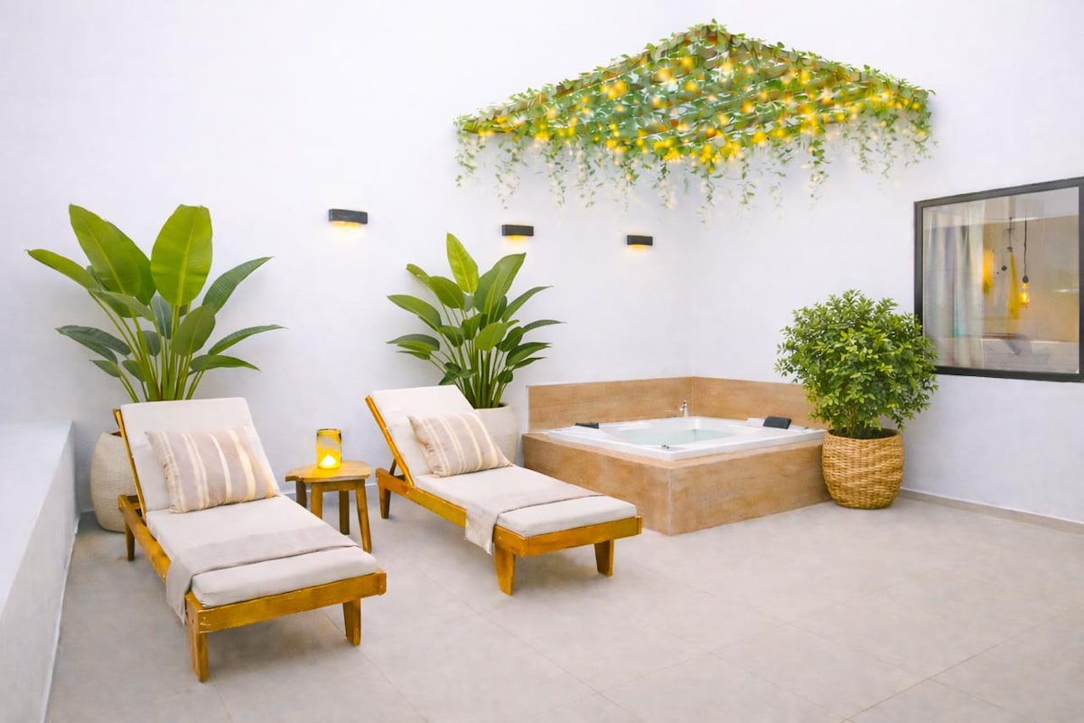 This is one of a kind apartment/house with everything you have ever dreamed of having in a home. Centrally located near all of the best places to eat and hang out in Laureles. The apartment is a 3 bedroom / 3 baths and has a large outdoor space equipped with a hot tub, beach chairs, bbq and a reading net. The terrace is exclusevily designed for guests to enjoy their stay at its maximun. This apartment was designed by some of the best architects who created a concept with local materials and art