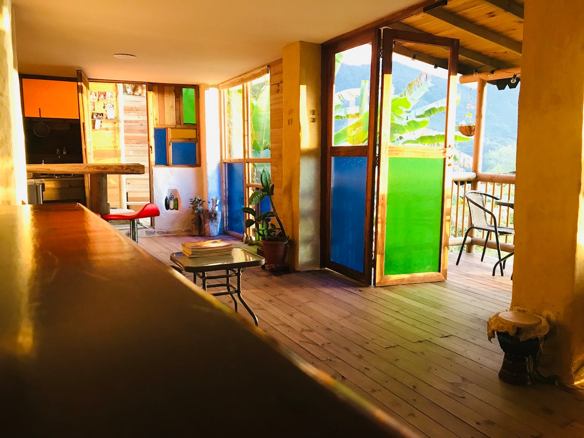 Cabaña privada de diseño fresco y acogedor a 25 minutos del centro de Medellín, y a 15 minutos del parque natural Arvi con transporte publico hasta la puerta de la casa, bastante iluminada con vista a la ciudad, se comparte la entrada y la terraza, brinda tranquilidad y contacto con la naturaleza, perfecto para estudiar o trabajar por internet (velocidad del Internet 300mg) para los que les gusta el paisaje natural, los pájaros libres, la chimenea. En un espacio rústico y sostenible