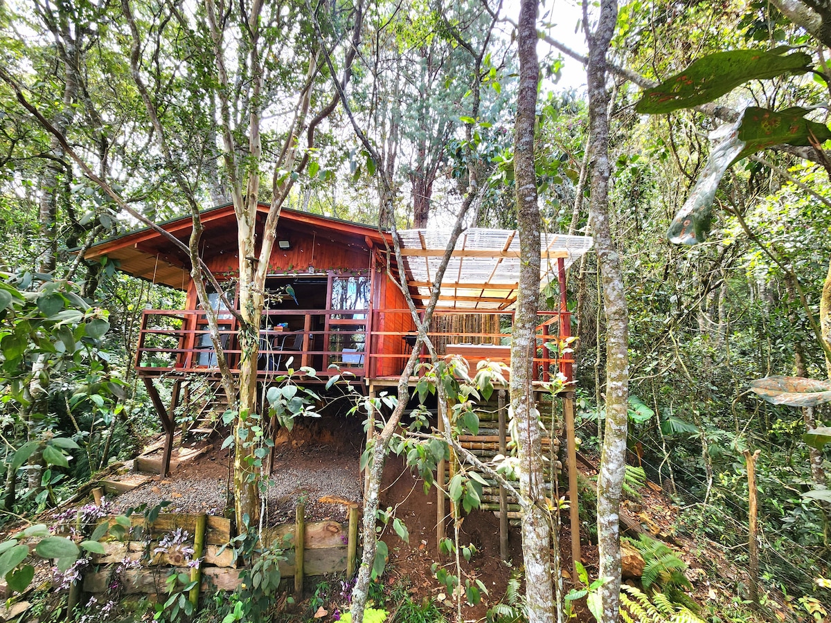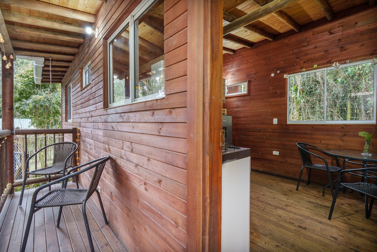 Es una cabaña de madera rodeada de árboles, animales y arroyos que hacen que tu estadía sea tranquila, placentera e inolvidable. El lugar perfecto para unos días de descanso en familia, en pareja o con amigos, apreciando hermosos amaneceres y atardeceres Exclusivamente para nuestros visitantes, alejada del bullicio de la ciudad, totalmente independiente y privada sin vecinos a tu alrededor, tendrás la visita de los maravillosos animales como el barranquero, ardillas, tucanes y otras aves.
