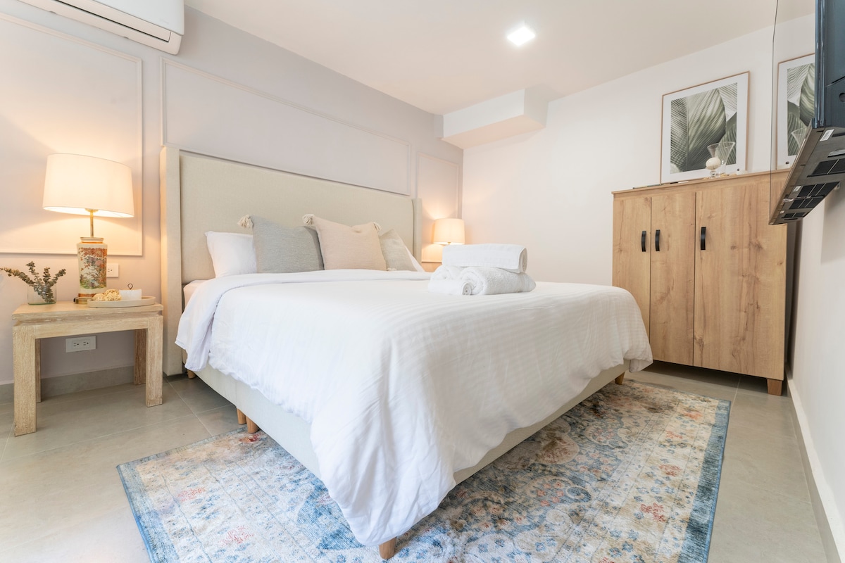 Apto en una zona céntrica y tranquila de Laureles. cuenta con dos ambientes, un dormitorio separado del área de la cocina, iluminado, fresco con balcón con vistas, cocina equipada. La decoración es moderna y elegante para crear un ambiente acogedor y relajante. La ubicación es ideal para explorar la ciudad a pie, a dos calles de la 70 y con una gran variedad de restaurantes y discotecas cercanos pero sin el ruido que impide un buen descanso.