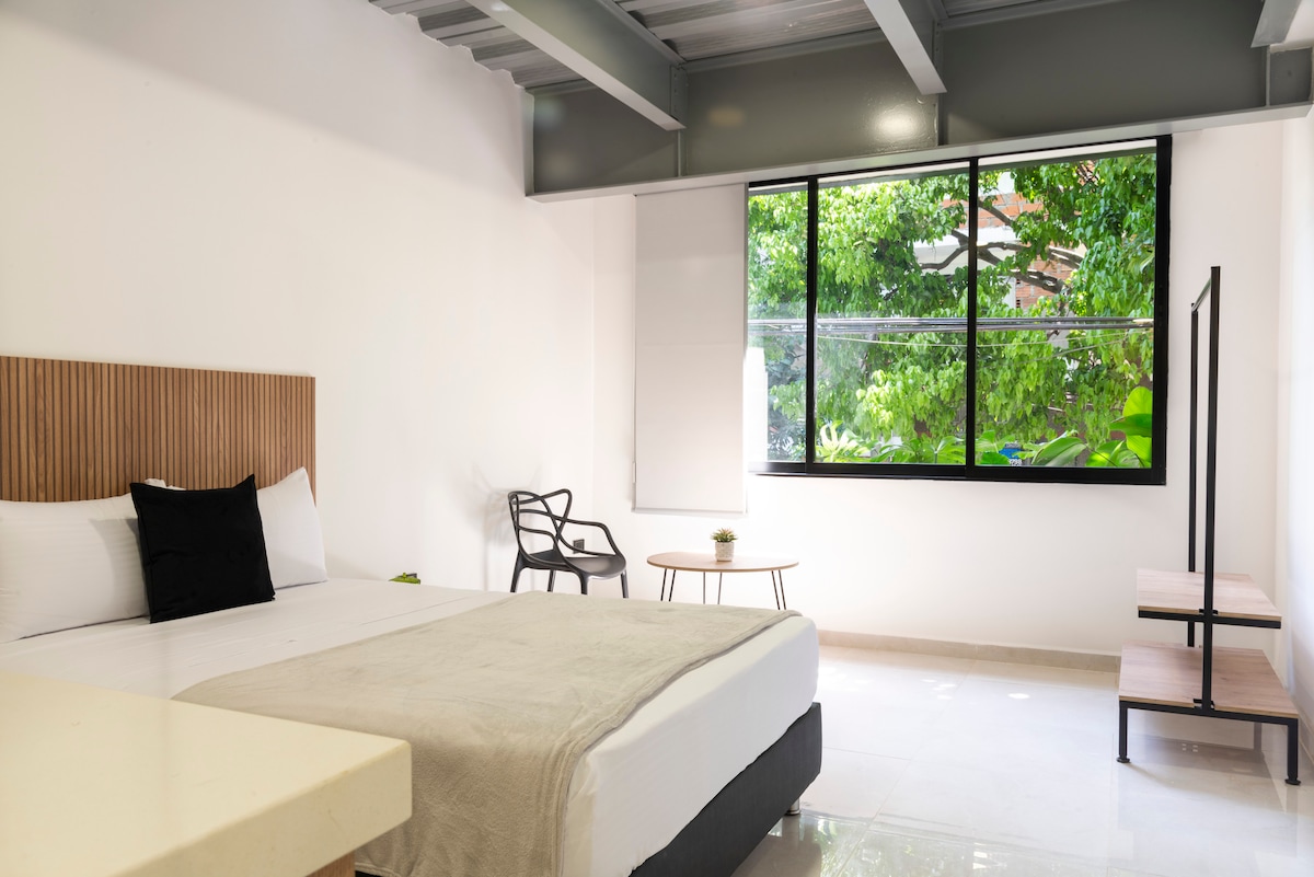 BUFFET BREAKFAST INCLUDED!! NEW exclusive luxury loft in Laureles. It is ideal for those looking for a central location in the city, close to the Estadio metro station. This area of “La 70” provides a calm atmosphere mixed with the exciting nightlife of the neighborhood. Additional information: if you are a foreigner, it is essential to show your stamped passport at the reception for check-in. The price varies if the booking is for more than 4 people.