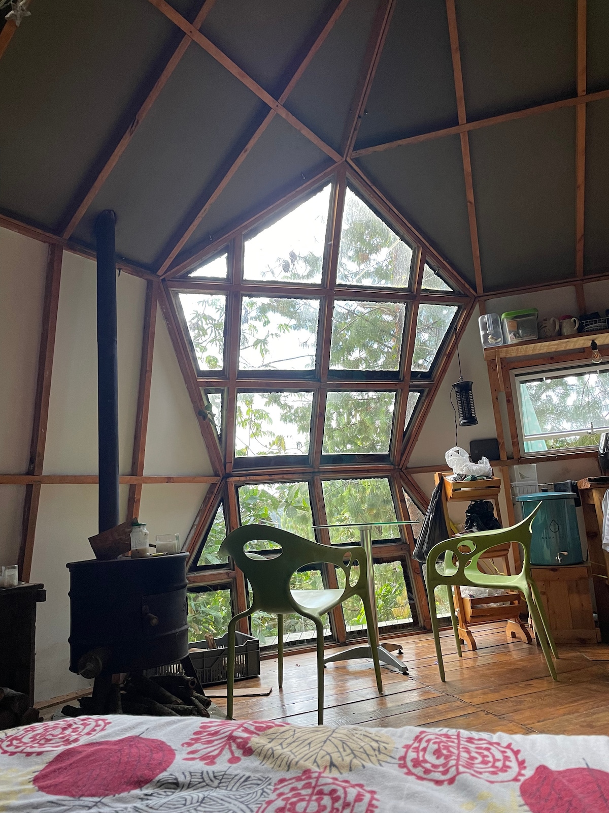 Alojarte en nuestro Domo Aguamarina es sumergirte en la calidez de la madera y en la armonía de la luz natural que llena el espacio de brillo y serenidad. Un refugio que invita al silencio, la calma y a un descanso verdaderamente reparador.