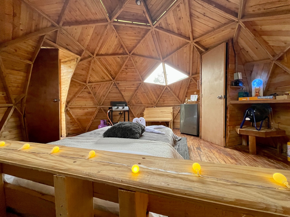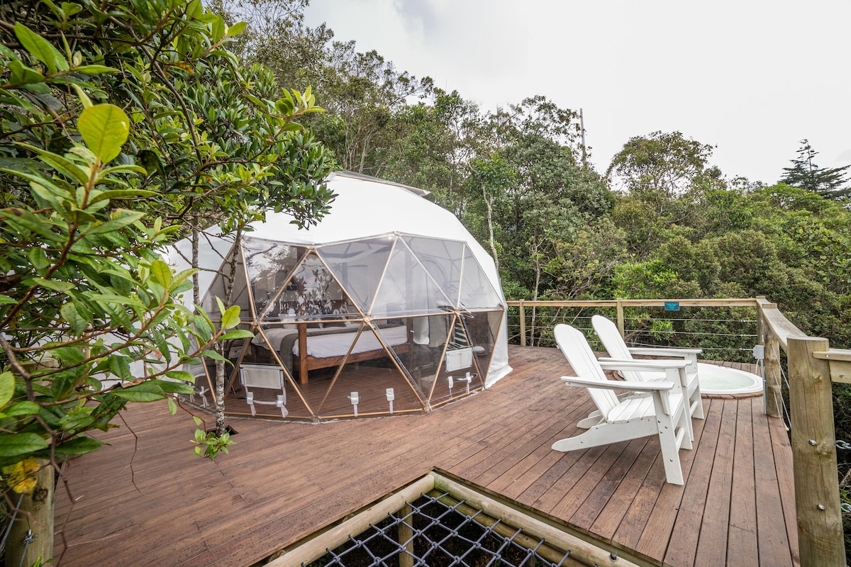 Hermoso Domo - Glamping ubicado junto a reserva natural. INCLUYE: Cama King• Cocina equipada• Baño privado• Agua Caliente• Jacuzzi privado• Sofá y escritorio• Deck con mobiliario• Televisión• WiFi 300 MBP• Fogata autoservicio• Asador-BBQ a gas• Parqueadero gratis. COMIDA PARA PREPARAR O DE RESTAURANTE, LICOR, MEDICINA Y CASI CUALUQIER COSA SE PUEDE PEDIR A DOMICILIO Y LO LLEVAN HASTA LA PUERTA DEL GLAMPING. RNT: 162437