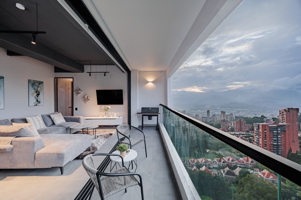 RECENTLY RENOVATED -High-speed internet great for remote work -Brand new A/C -Fully renovated Industrial design apartment -King size bed -Breathtaking views of Medellín (trust me, worthwhile to stay here) -19th floor -Unbeatable location in Poblado near to Provenza and Lleras Park -Modern amenities -Spacious living area -Smart TV x 2 -Fully equipped kitchen -Washer & Dryer Tower -Pool -Gym -Coworking space -Restaurant inside the building -Private parking -Self check-in -24/7 Security