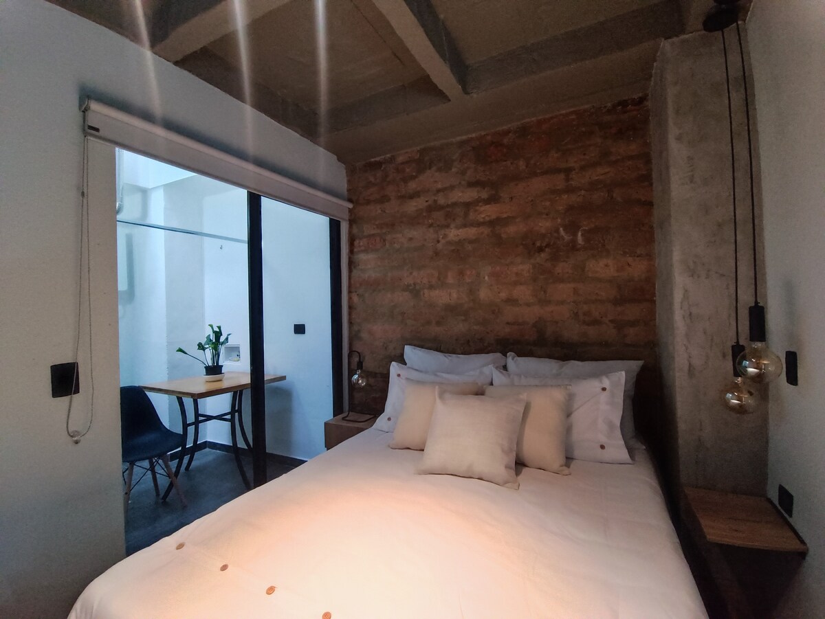 Loft 43 Medellin Increible apartaestudio Ideal para quienes disfrutan trabajar desde cualquier lugar. Cuenta con una cama Queen Size, escritorio y silla de trabajo, cocina integral dotada, baño privado con ducha de agua caliente, televisión de 43 y conexión WIFI. Los elementos básicos de cocina puedes solicitarlos en recepción, Aceite, vinagre Sal y pimienta puedes comprarlo en en una tienda cercana. Para registrarse es necesario presentar un documento de identificación fisico válido.
