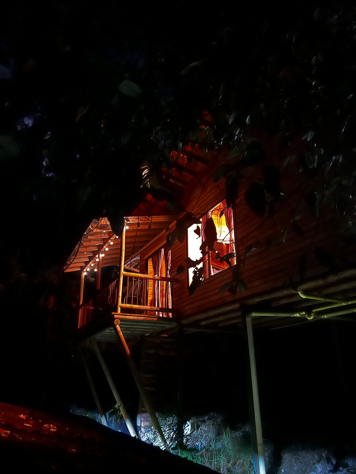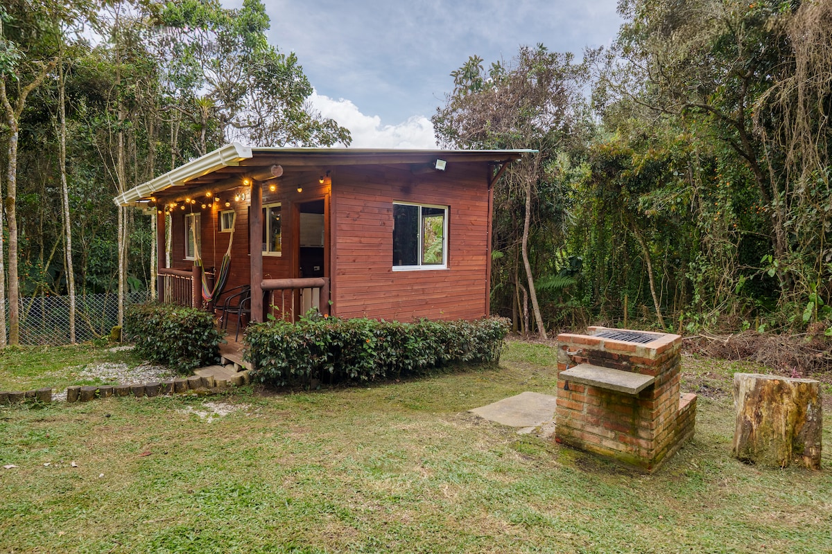 Es una cabaña de madera rodeada de árboles, animales y arroyos que hacen que tu estadía sea tranquila, placentera e inolvidable. El lugar perfecto para unos días de descanso en familia, en pareja o con amigos, apreciando hermosos amaneceres y atardeceres Exclusivamente para nuestros visitantes, alejada del bullicio de la ciudad, totalmente independiente y privada sin vecinos a tu alrededor, tendrás la visita de los maravillosos animales como el barranquero, ardillas, tucanes y otras aves.