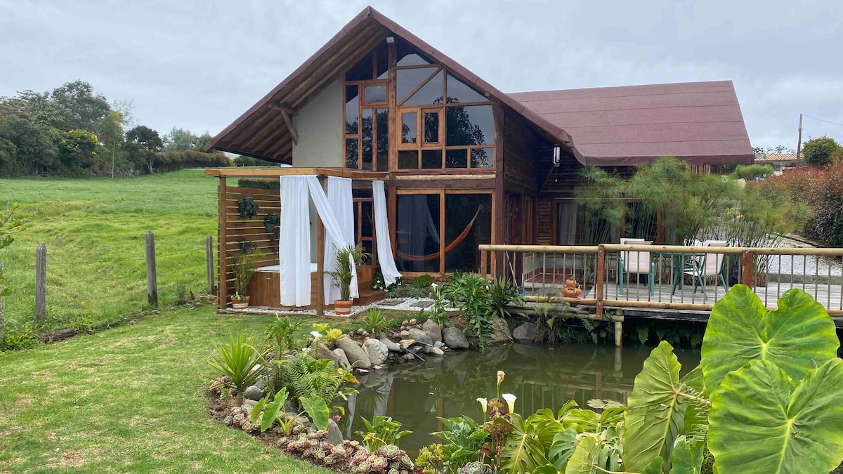 A small, charming, comfortable and cozy retreat in a calm and beautiful country setting overlooking a scenic and peaceful valley of pastoral landscapes, lots of birds, broad skies and panoramic views 1 hour from Medellín. A haven to forget about your life in the city. A perfect stay for couples or friends searching for rest or intimacy. It is also ideal for creators, digital nomads or mistics looking for inspiration and undisturbed solitude to pursue their arts, crafts and paths.