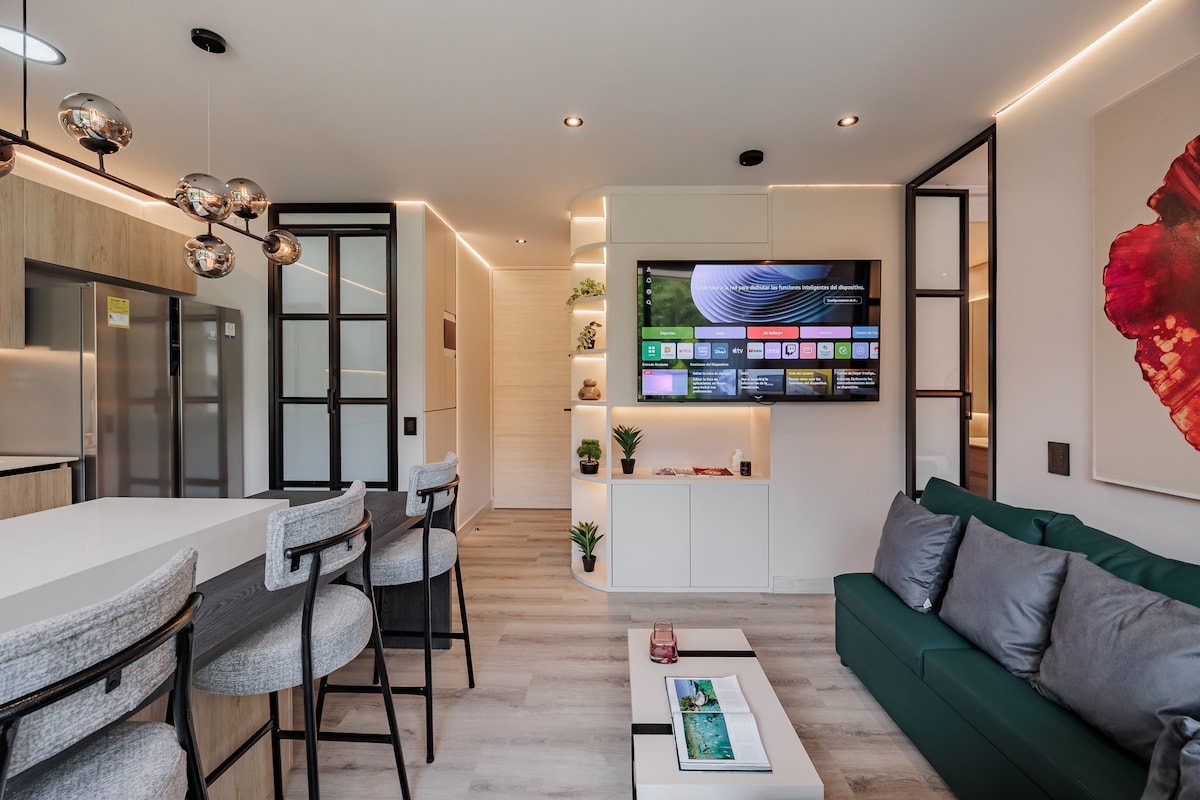 Modern luxury apartment in El Poblado featuring air conditioning, elegant interiors, stunning views, and a private balcony tub. Ideal for a comfortable and stylish stay in Medellín. The building also offers a gym available from 5:00 a.m. to 10:00 p.m.
