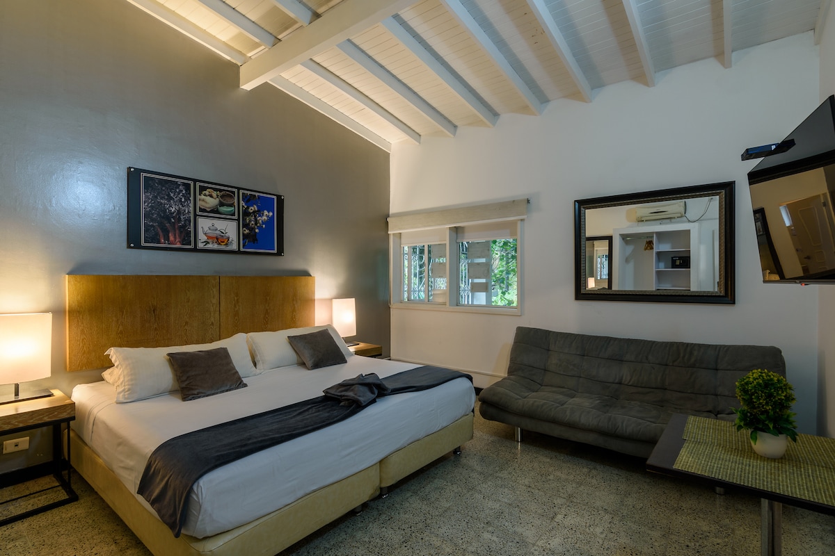Habitación Doble + Twin – amplia, luminosa y con estilo colonial renovado. Baño privado y área de 15 m² + baño de 2 m². Ideal para familias, parejas, y nómadas digitales que buscan comodidad y conexión cultural: Zona coworking con internet de alta velocidad. Patio interior con vegetación, sala de TV, comedor compartido y cocina equipada. Desayuno cada mañana. Vive una experiencia fresca, natural y silenciosa en pleno corazón turístico de Medellín, a pasos de metro, restaurantes y bares.