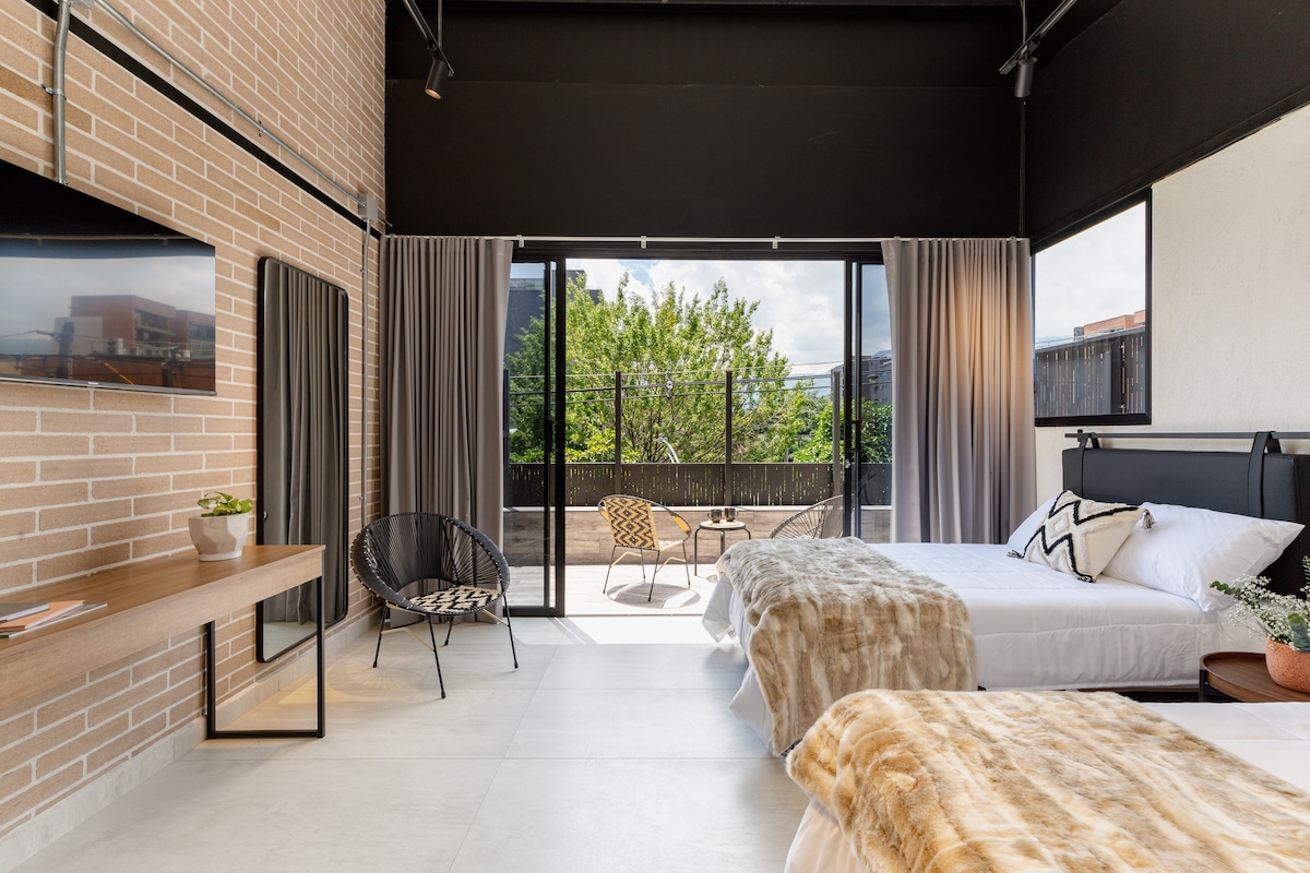 Welcome to your modern top-floor studio in trendy Laureles! Enjoy chic design, relaxing comfort, and a 5-minute walk to top dining and nightlife. This retreat includes 1.5 baths, full kitchen, A/C, in-unit washer/dryer, private + guest parking. Relax with fast fiber internet, Smart TV, and city views from your private balcony. With 24-hour security and spotless standards, peace of mind is assured. Perfect for digital nomads discover the best of Medellín in style and comfort.