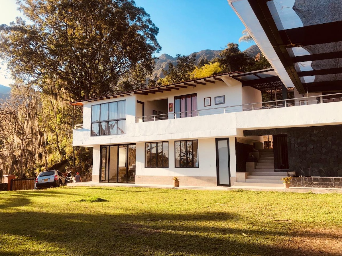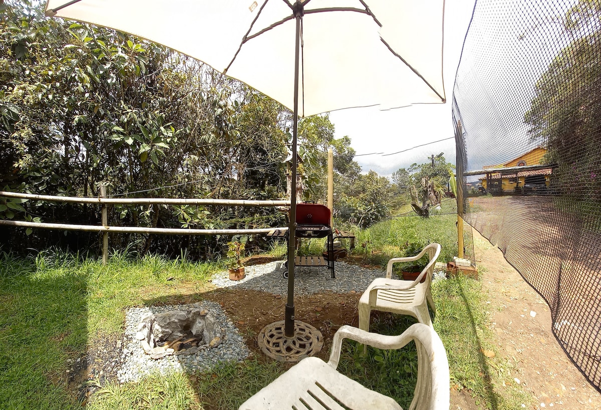Comfortable, safe, and peaceful retreat just 50 minutes from Medellín and 5 minutes from Arvi Park. Surrounded by nature and trails, perfect for enjoying with your family and pets. Our property offers a spacious, fully private, and fenced green area, with ample parking. Cozy up by the fireplace with provided firewood and enjoy a relaxing evening watching TV or playing board games.