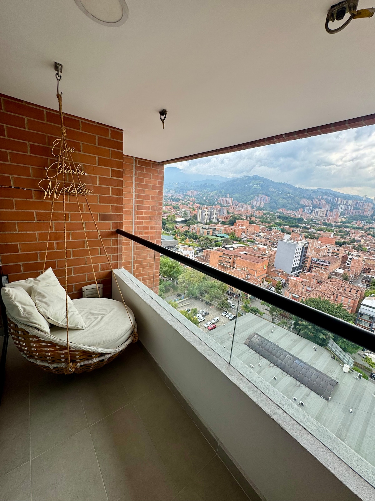 Apartamento ubicado en el piso quince, en uno de los mejores sectores de la ciudad de Medellín, con una vista es excepcional. Cuenta con 2 alcobas con aire acondicionado, 2 baños completos y un balcón donde podrás disfrutar de la vista. Todas las cortinas son automáticas con un toque moderno, 3 televisores, lavadora y cocina bien equipada y lavavajillas, cuenta con 3 parqueaderos cubiertos gratis. En la terraza encontraras una piscina donde podrás relajarte y disfrutar el paisaje. Gimnasio.