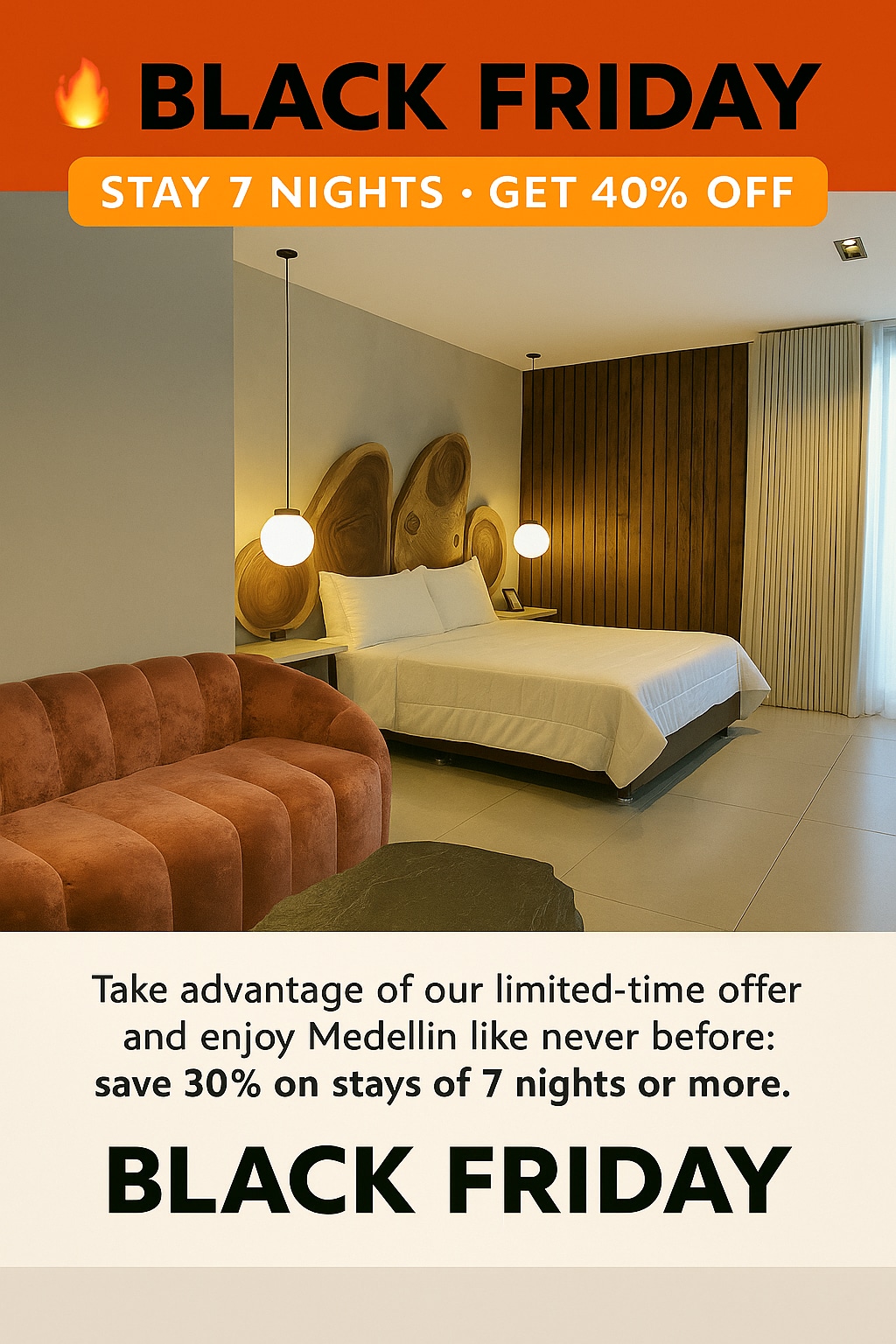 El Lettera Hotel se encuentra ubicado en el exclusivo sector El Poblado en Medellín. En sector residencial y a pocos minutos caminando de Provenza, una de las zonas gastronómicas y de diversión con mayor crecimiento en la ciudad, cerca del Parque Lleras. Contamos con cómodas habitaciones dotadas con Smart TV, Cajila de Seguridad, minibar, escritorio, amenities y más que te harán sentir como en casa. En Lettera Hotel escribimos historias, ven a vivir la tuya!