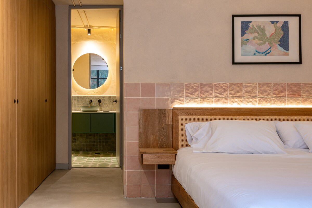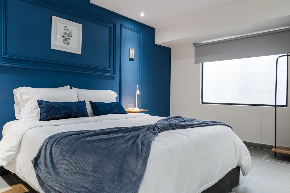 Descubre una experiencia, diseñada para quienes buscan elegancia, comodidad y exclusividad. Cada detalle ha sido cuidadosamente pensado para ofrecerte una estancia inolvidable: desde su decoración moderna y sofisticada hasta la iluminación cálida que crea un ambiente acogedor. Cama amplia y sumamente cómoda, sábanas de alta calidad, y un espacio impecable que combina estilo y tranquilidad. Ya sea que vengas a relajarte o a trabajar, encontrarás el equilibrio perfecto entre lujo y comodidad.