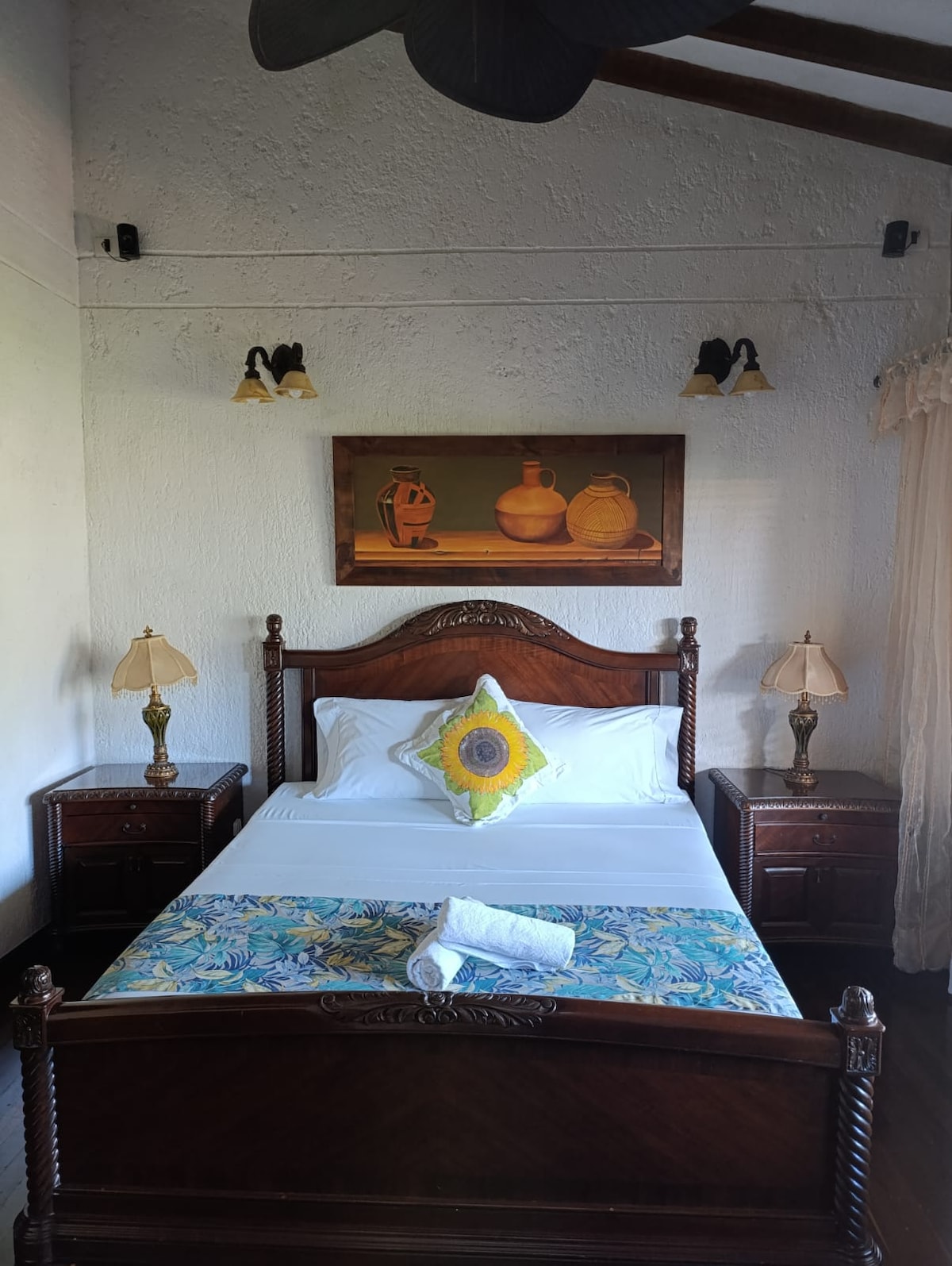Our room comes with a Double Bed, Air Conditioning, HIgh-speed Internet, TV with Netflix, Toiletries, Open Closet. and a Comfortable Desk. We offer our FREE breakfast in Caimán - our outdoors cafe - where you will find as well pastries and plates from our tasty and delicious Colombian Cuisine.