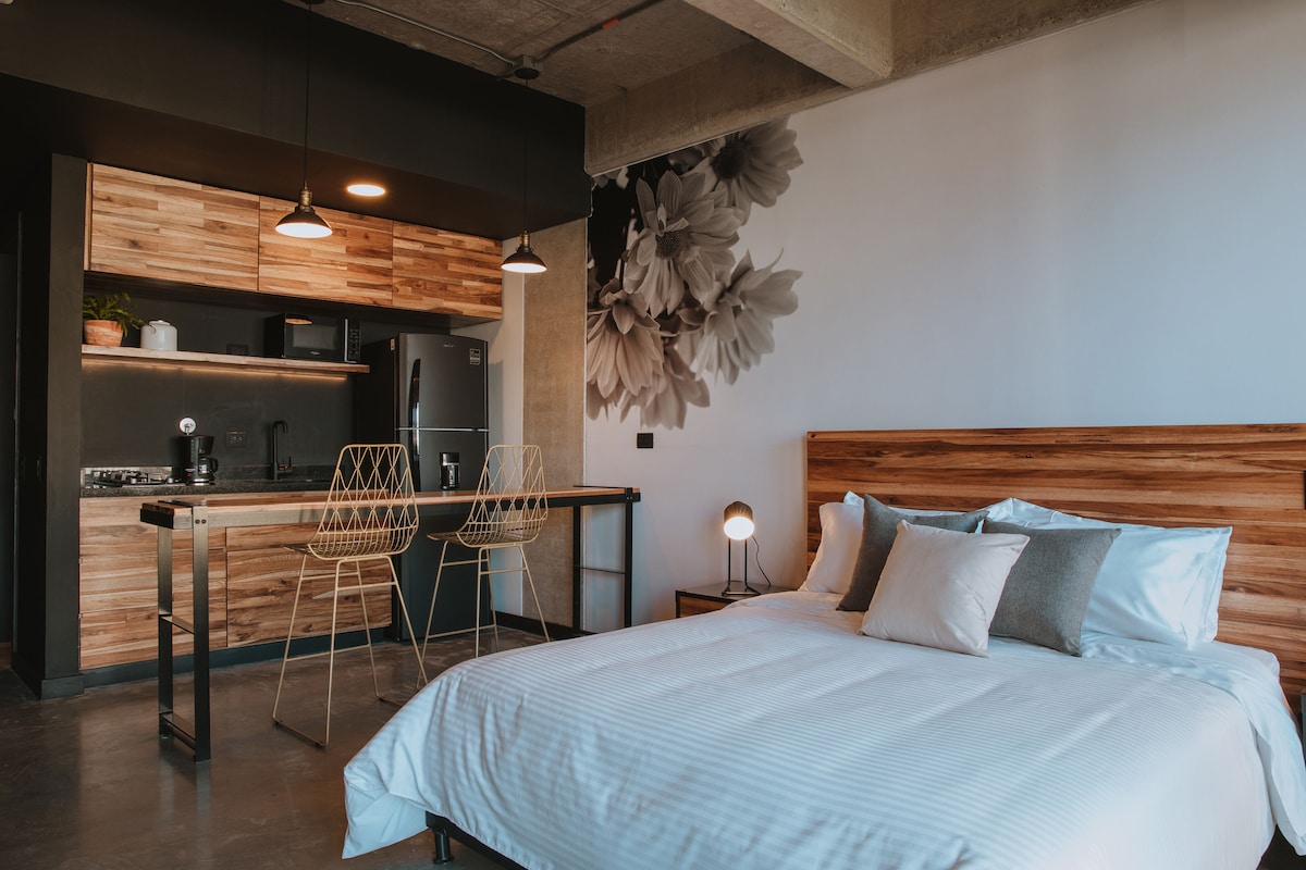 • Amazing location in heart of Poblado: "Oasis in the middle of the best part of the city, walking distance to everything” • Modern, fully furnished Loft • Sleeper sofa • High speed 100 Mb WiFi • Loads of nature around • On-site staff to help you with your needs 24/7 • A/C • Private Hot Tub • Pool in the common areas • Balcony w/ great views • 5 mins walk to best restaurants, cafes, malls. 15 mins walk to Poblado and Lleras Park • Fully stocked kitchen • 43” Smart TV w/ Apps • Transparent prices