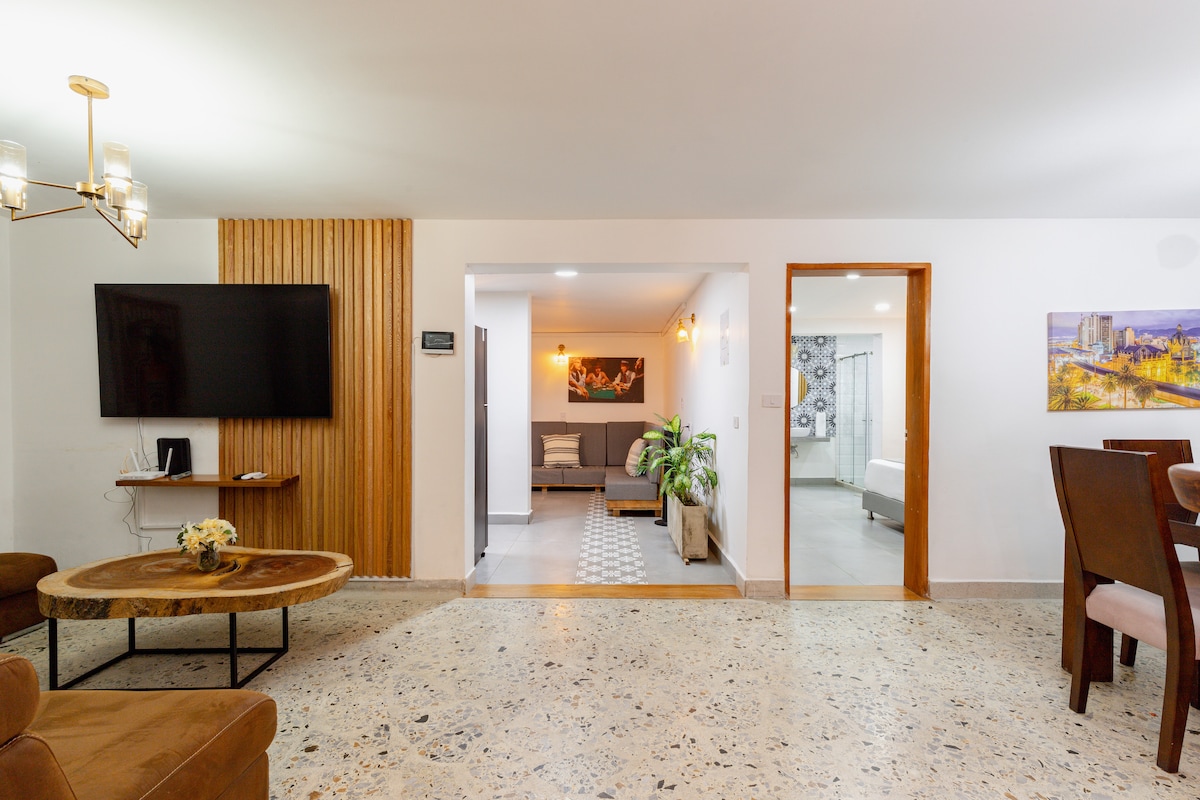 Welcome to Yerbabuena! Discover our stylish apartment in El Poblado, the perfect launchpad for Colombian adventures. Centrally located, enjoy easy access & free on-site parking. Our cozy space offers comfort, style, and is just 3 mins from Lleras Park. Unwind in comfy beds & relax in the bright living area. We offer 4 bedrooms, 3 bathrooms and can host 7 people. Gorgeous River creek runs behind this lovely apartment and will make your sleep very pleasant. Book your stay now!