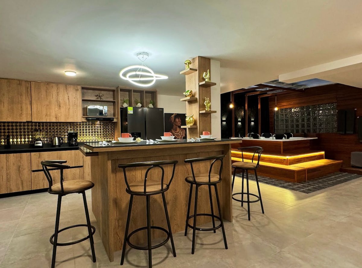 Welcome This luxury 5-bedroom home features A/C, Smart TVs, and private bathrooms in every room. Located less than 15 minutes from El Poblado and Provenza, with affordable Uber rides for just $2.5 USD, you’ll be close to the city’s best nightlife. Enjoy a private rooftop, available 24/7, complete with a jacuzzi, outdoor cinema, BBQ, and stunning views of Medellín. If you’re looking for more than just a place to sleep, this is it. Enjoy the perfect experience! Friends are welcome with free entry