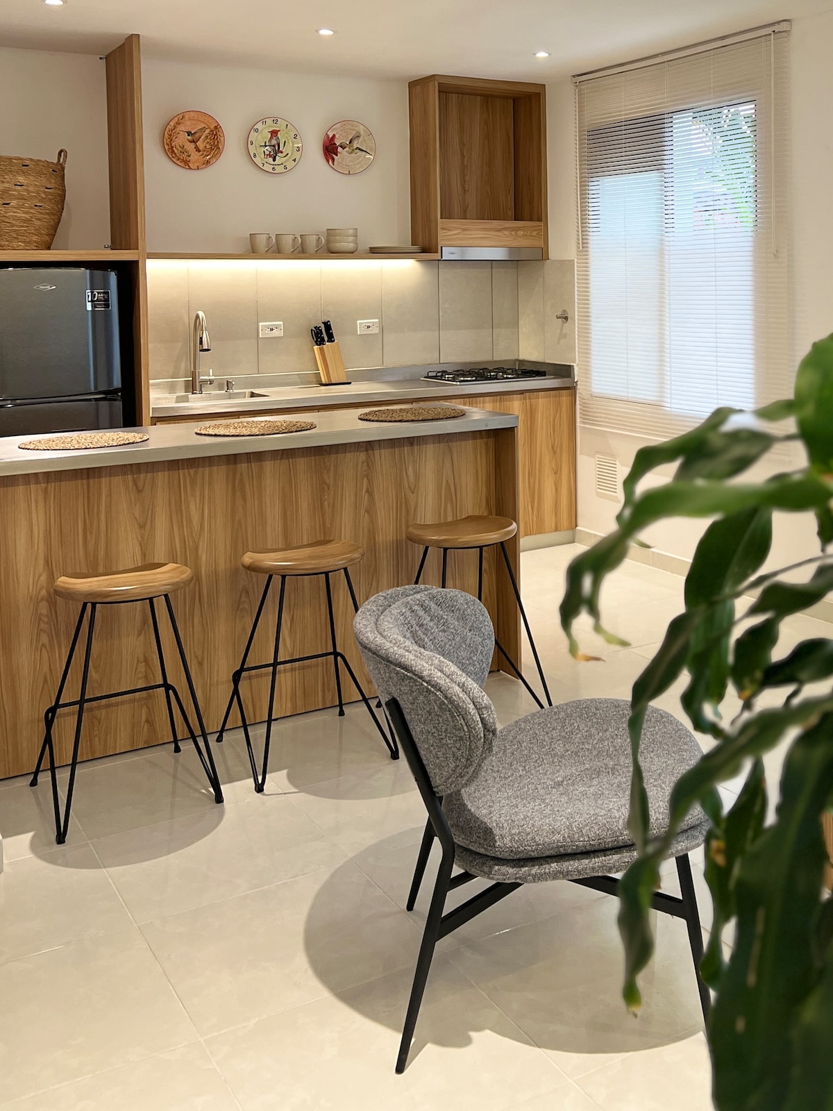 Suite completamente amoblada de 28 m2, con aire acondicionado y cocineta. Ubicada en una de las mejores zonas de Medellín, en un barrio muy tranquilo y cerca de todos los sitos de interés. La Suite cuenta con una vista espectacular a la ciudad y a las montañas. Podrás hacer uso de la zona de coworking, gimnasio y un espectacular café que ofrece diferentes tipos de bebidas a base del mejor café colombiano, podrás disfrutar de tu bebida en la terraza que se encuentran en el 2do piso del edificio.