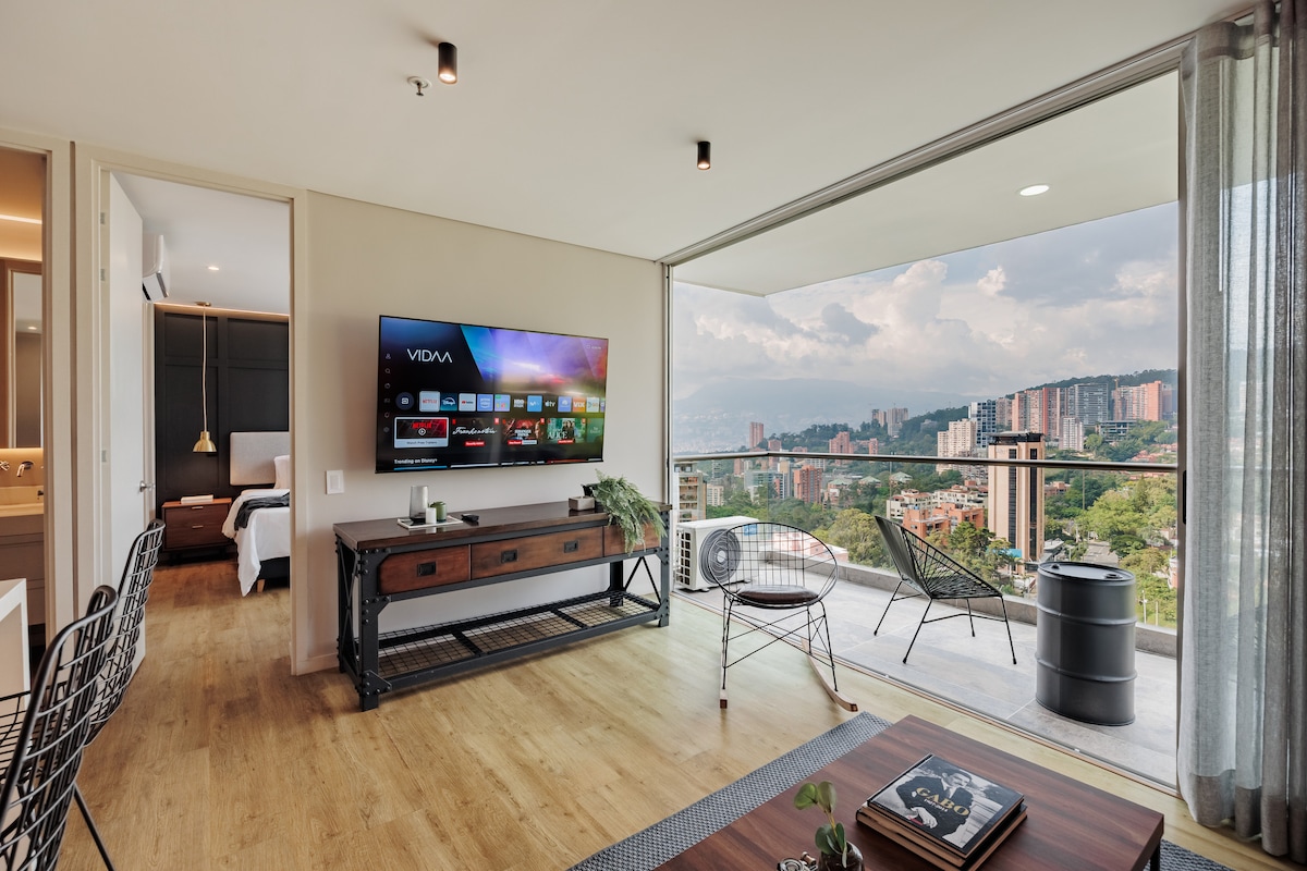 -High-speed internet great for remote work -Brand new A/C -Fully renovated design apartment - King size bed -Breathtaking views of Medellín (trust me, worthwhile to stay here) -16th floor -Unbeatable location in Poblado near to Provenza and Lleras Park -Modern amenities -Spacious living area -Smart TV x 2 -Washer & Dryer Tower -Pool and Gym -Coworking space -Restaurant inside the building -Parking lot -Self check-in -24/7 Security