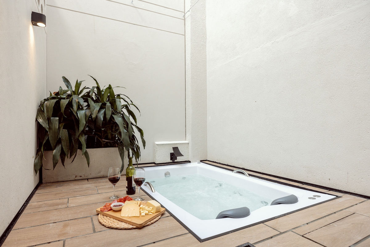 独一无二的公寓,配备私人按摩浴缸和露台!