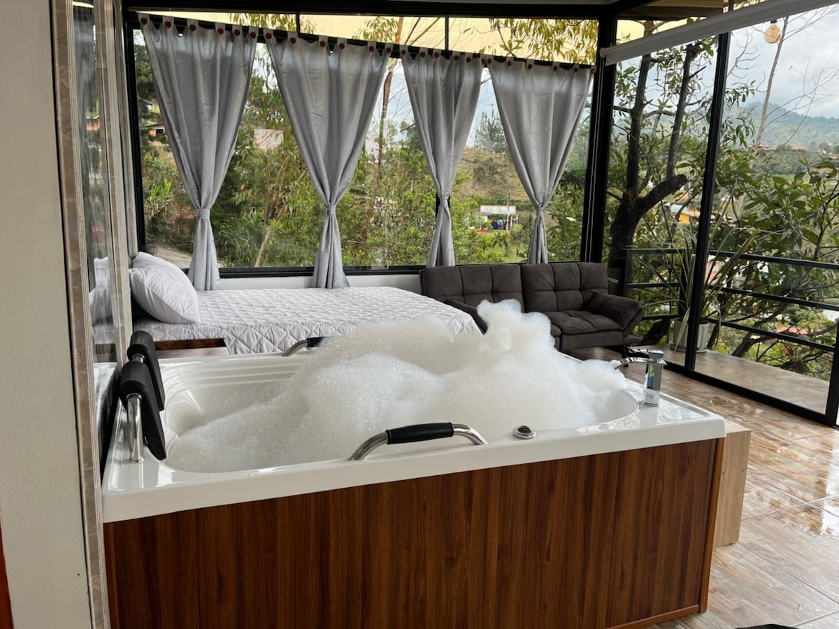 Tercer piso para un descanso campestre con vistas panorámicas y domótica inteligente. Sumérgete en la tranquilidad de nuestro loft y disfruta de la comodidad de la automatización que controla la iluminación, temperatura y crea una atmósfera relajante con el proyector de aurora boreal. Ubicado a 10 minutos del aeropuerto y 5 minutos del centro de Guarne en vehículo. Ideal para amantes de la naturaleza y viajeros que buscan comodidad. ¡Reserva ahora y vive una experiencia única!