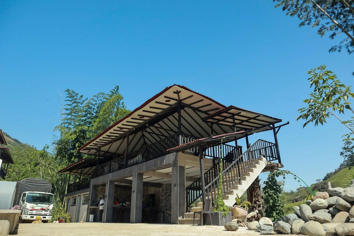 Hostal ubicado en Alejandría, Antioquia. Rodeado por ríos y montañas, que cuenta con habitación con baño privado, zonas comunes de entretenimiento, Wi Fi, fogata, estacionamiento gratuito y conexión con diferentes atractivos turísticos en la zona. Contamos con bicicletas todo terreno para alquilar y la posibilidad de guiarlos en experiencias de senderismo y visita a ríos. La alimentación no esta incluida, se puede hacer uso de la cocina por un costo adicional.