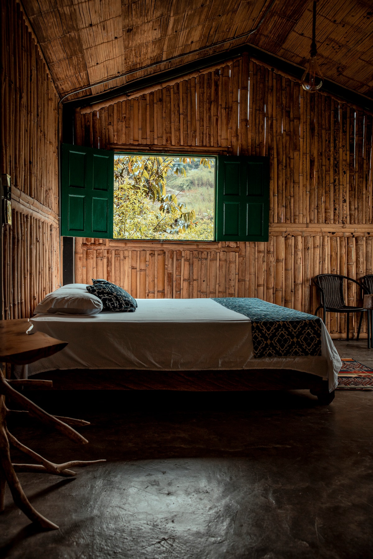 Un ambiente diseñado para grupos, familias o viajeros que buscan una experiencia de hospedaje rodeada de arte y naturaleza. Equipado con una cama Queen y dos camas sencillas, este amplio espacio ofrece comodidad superior acompañada de una vista panorámica privilegiada. Cuenta con: • Cama Queen y dos camas sencillas • Baño privado con ducha • Piso en madera natural • Vista panorámica hacia las montañas Incluye desayuno orgánico con productos de la huerta.