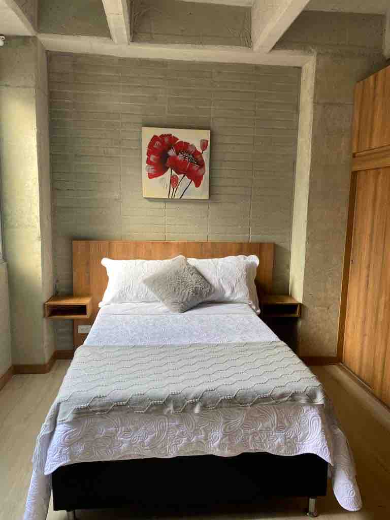 Espacios amplios, balcon, sala comedor, cocina, dos habitaciones, cada una con cama doble, buena ventilación e iluminación, un baño amplio, todo con un toque acogedor, que te hará sentir como en casa. La ubicación es estratégica, estarás a 8 minutos caminando de la estación metro Envigado y del centro comercial Viva, a 10 minutos en trasporte público del poblado y a 15 minutos en metro del centro de Medellín.