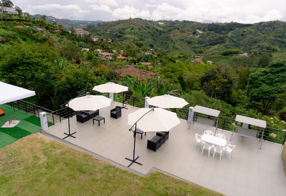 This cozy 2 bedrooms 2.5 bathroom home sleeps up 8 people (3 Queen size beds, 1 single bed, 1 Queen inflatable mattress) has 2 smart TVs, stereo, BBQ, and soccer field on nearly an acre of private land. You and your guests will have full access to entire home during your stay. This vacation home is 20 min away from Jose Maria Cordoba International Airport, and 30 min from Medellin center. It is also 10 min from charming San Antonio and near Restaurants and Shopping area. Place to enjoy nature